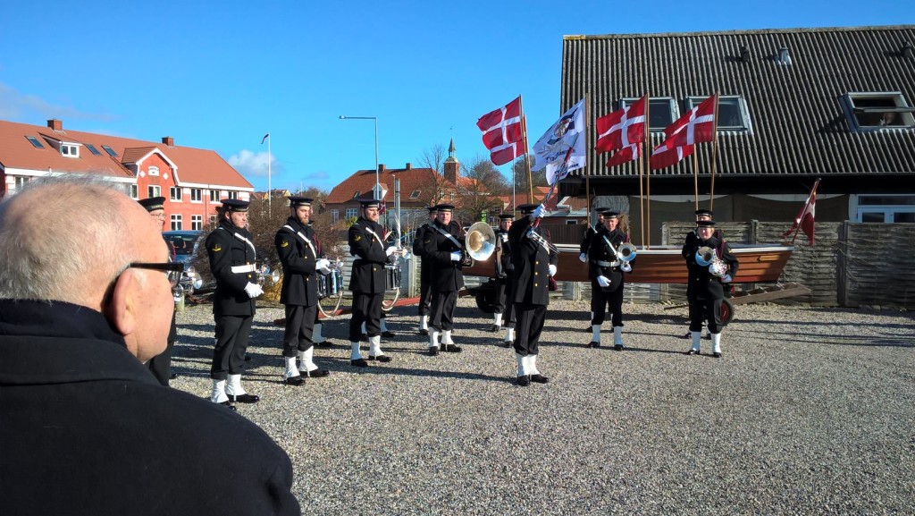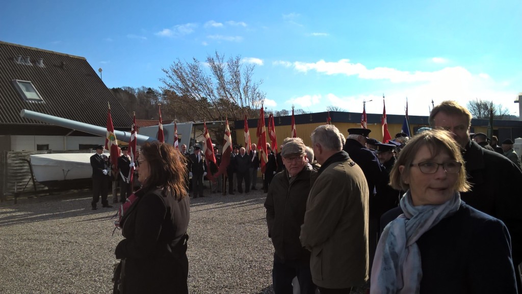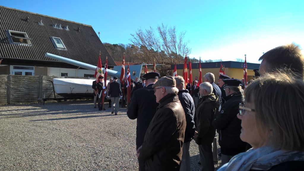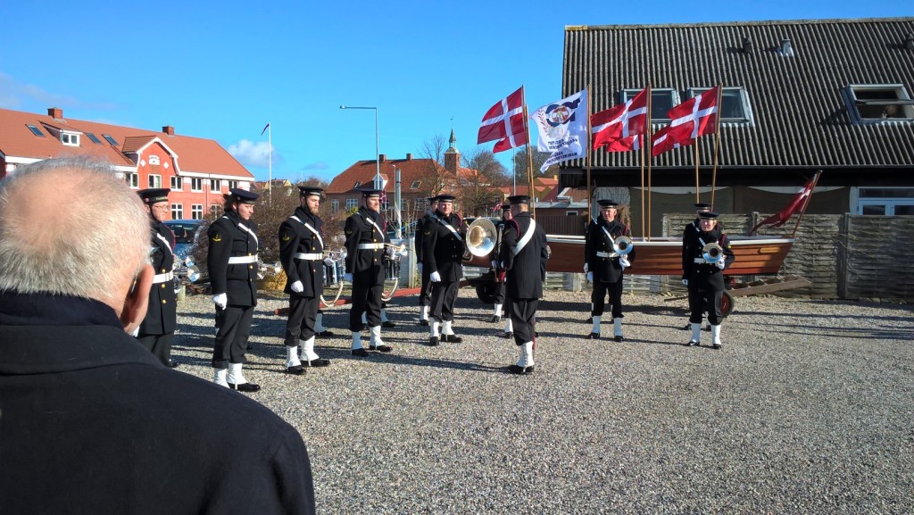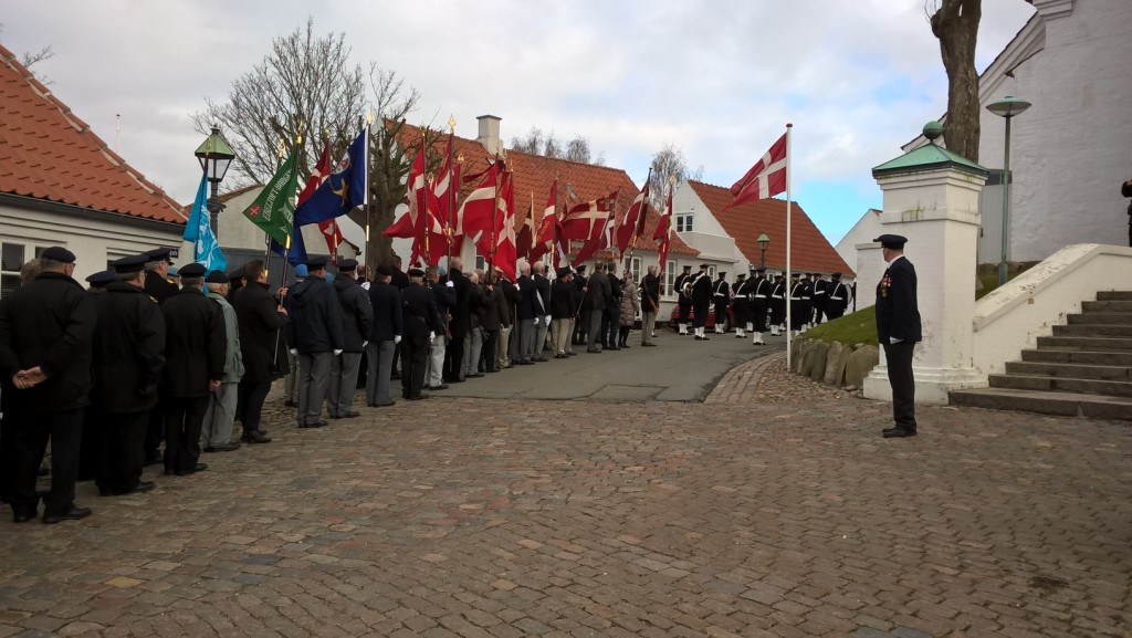 Efter Gudstjenesten marcheredes med Søværnets Tamburkorps og flag-/faneborgen i spidsen til Havnen ad ruten Kirkegade, Overgade, Juulsbakke, Nedergade, Søndergade, Havnevej, hvor der gjordes holdt på kajen foran MHV 908 "Brigaden", hvor Tamburkorpset gav en lille koncert. Derfra marcheredes videre havnen rundt til Marinestuen, hvor Tamburkorpset ligeledes gav en koncert, inden alle flag og faner blev sat i holdere uden for Marinestuen. Det så rigtig flot ud.