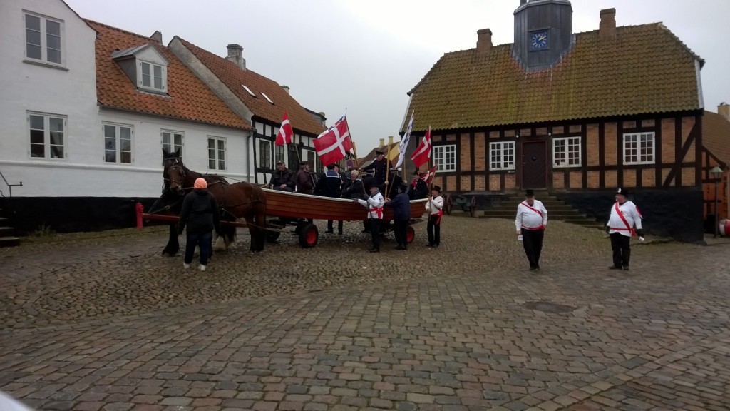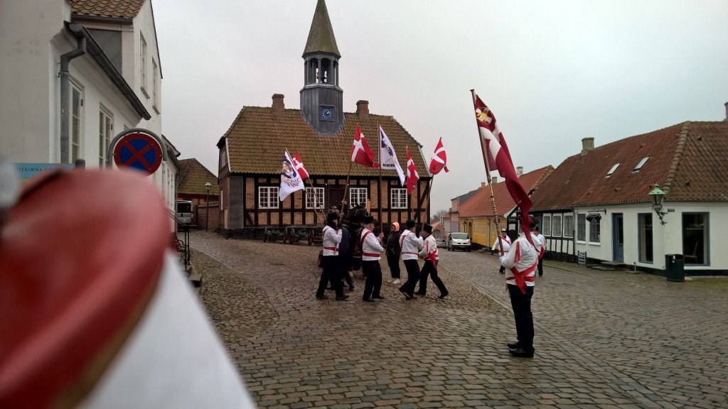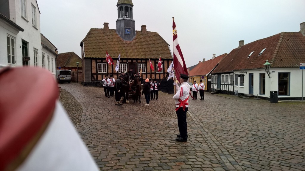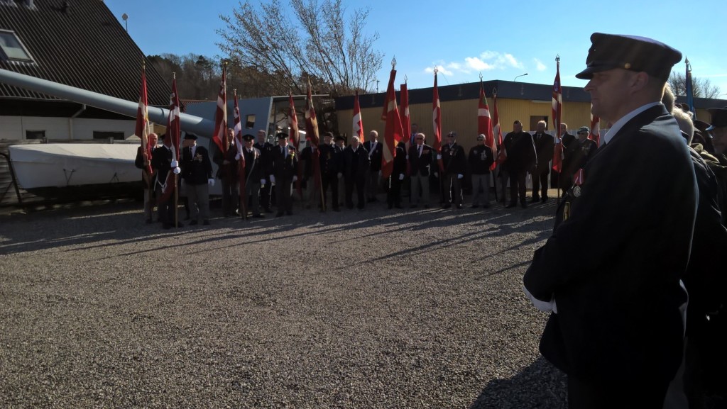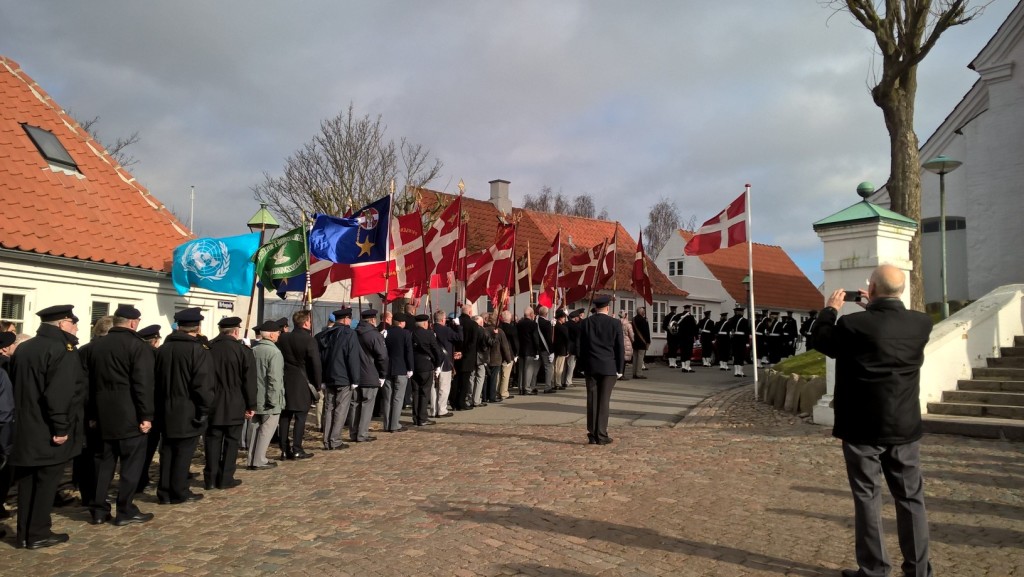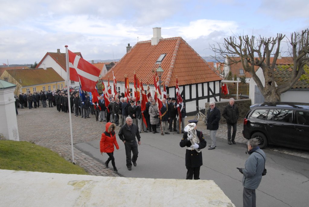 Efter Gudstjenesten marcheredes med Søværnets Tamburkorps og flag-/faneborgen i spidsen til Havnen ad ruten Kirkegade, Overgade, Juulsbakke, Nedergade, Søndergade, Havnevej, hvor der gjordes holdt på kajen foran MHV 908 "Brigaden", hvor Tamburkorpset gav en lille koncert. Derfra marcheredes videre havnen rundt til Marinestuen, hvor Tamburkorpset ligeledes gav en koncert, inden alle flag og faner blev sat i holdere uden for Marinestuen. Det så rigtig flot ud.