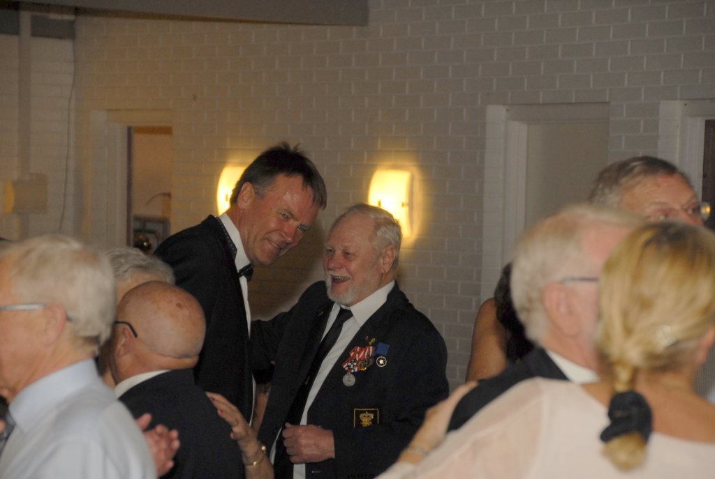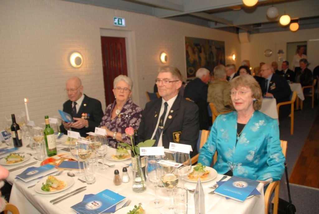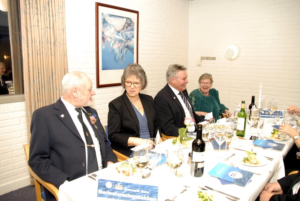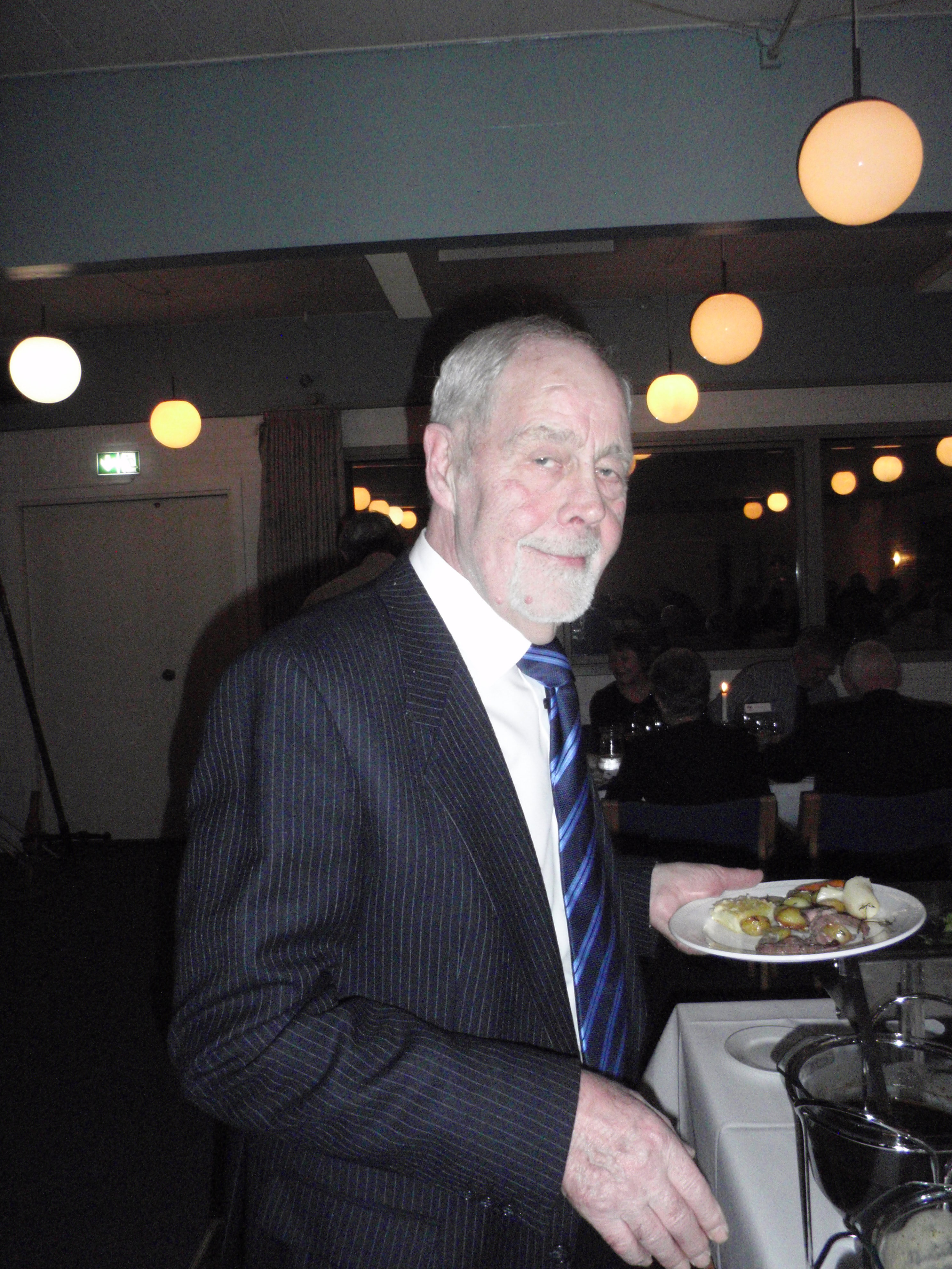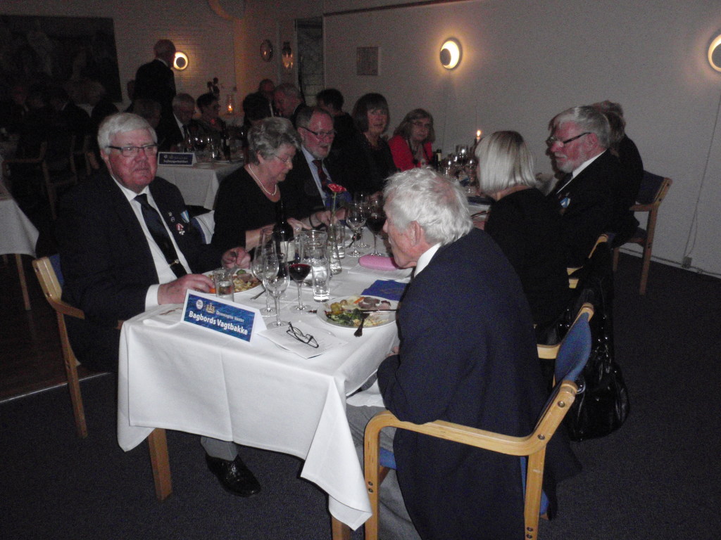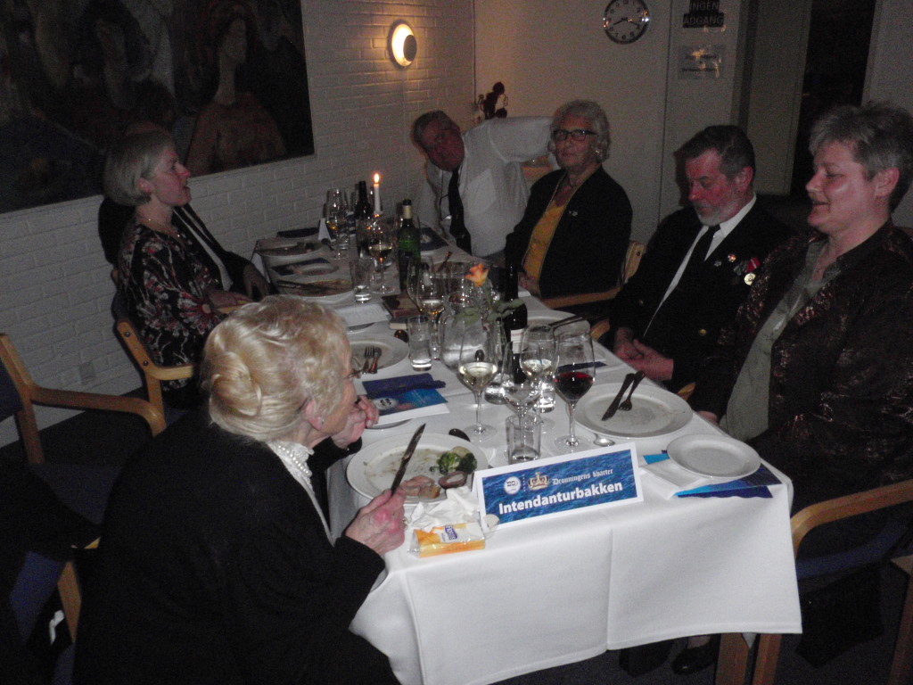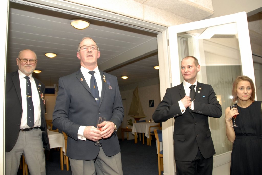 Stuen var fyldt til bristepunktet, ca. 200 gæster. Efter velkomst af formand Erich H. Franzen overtog tidl. formand, æresmedlem Jørgen Brøgger hvervet som toastmaster. - Der blev serveret "Marlenes luksus-canapéer", hvid Ebeltoft Marinevin, øl og vand.