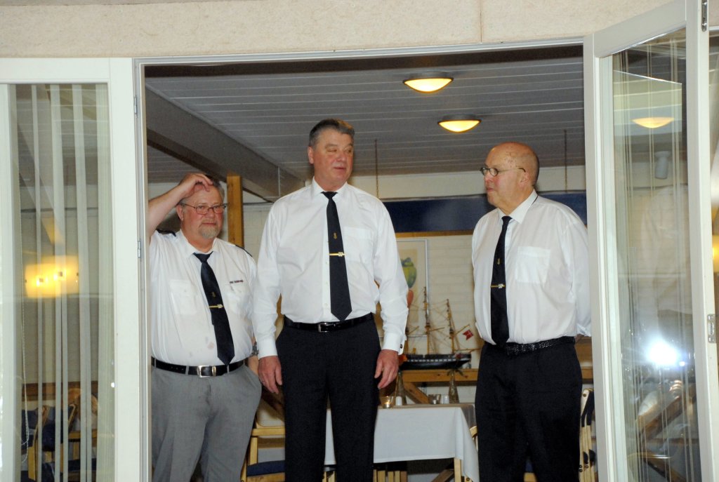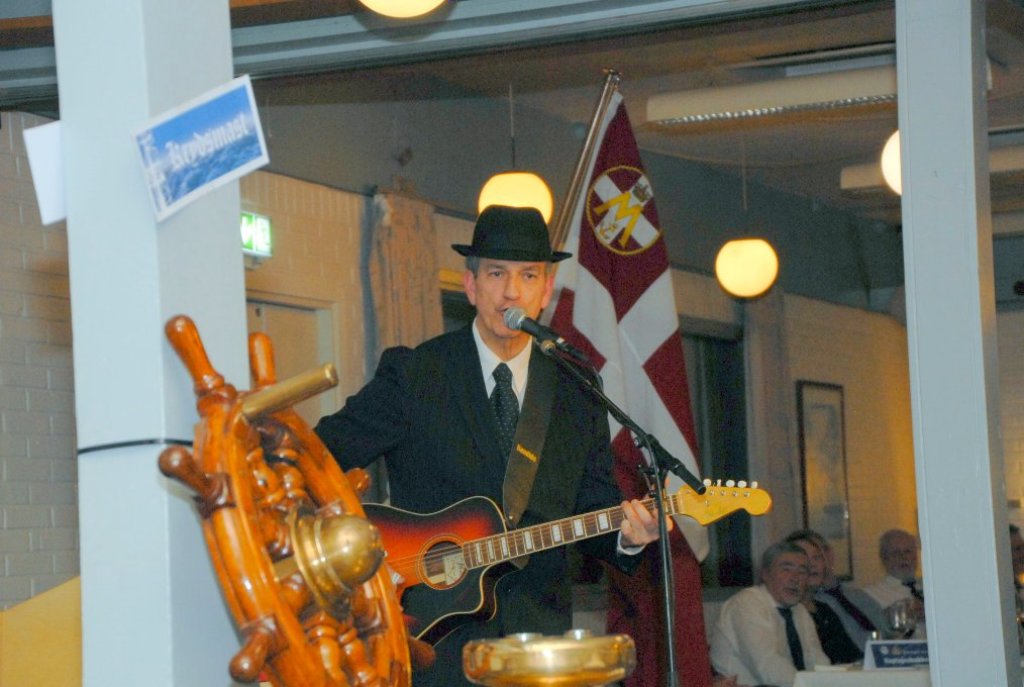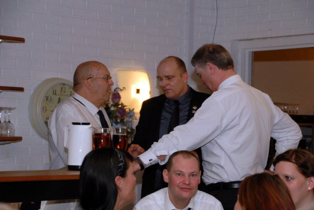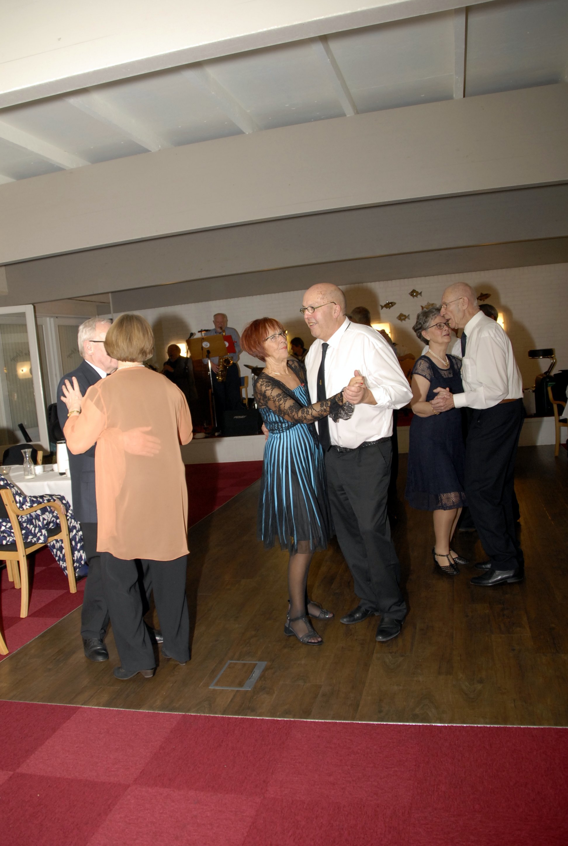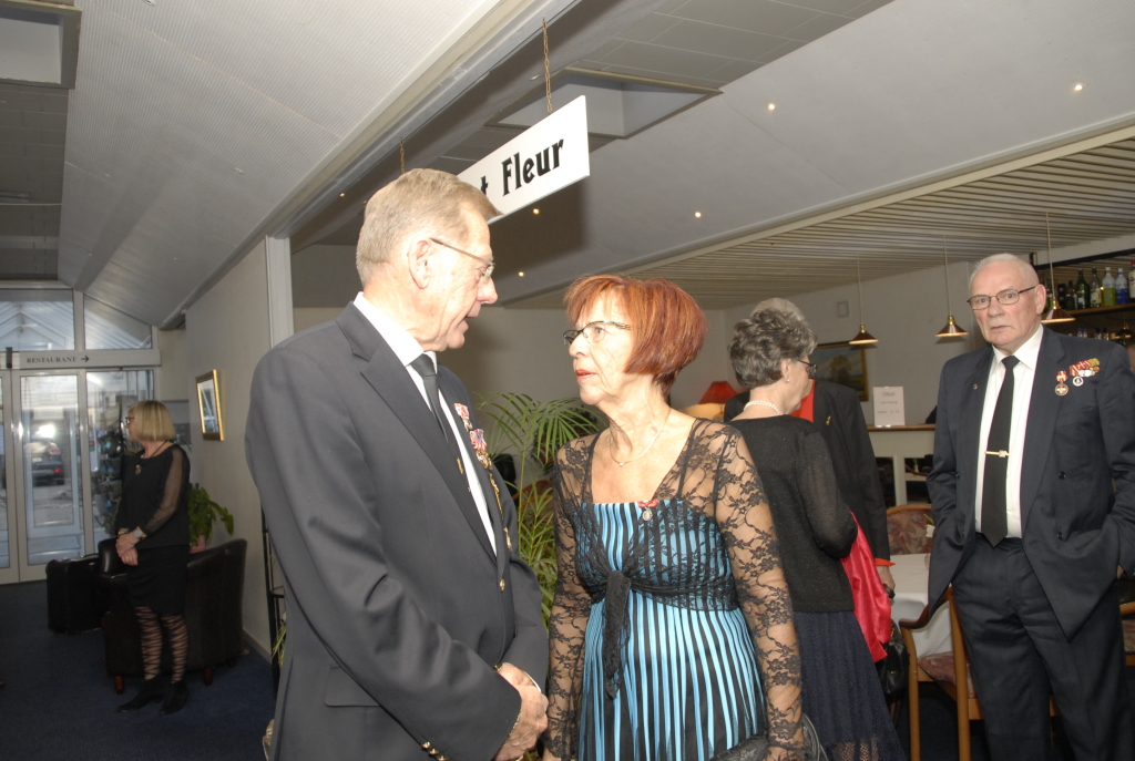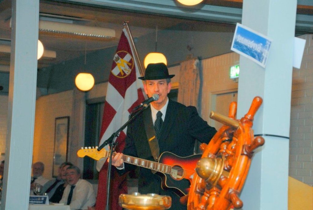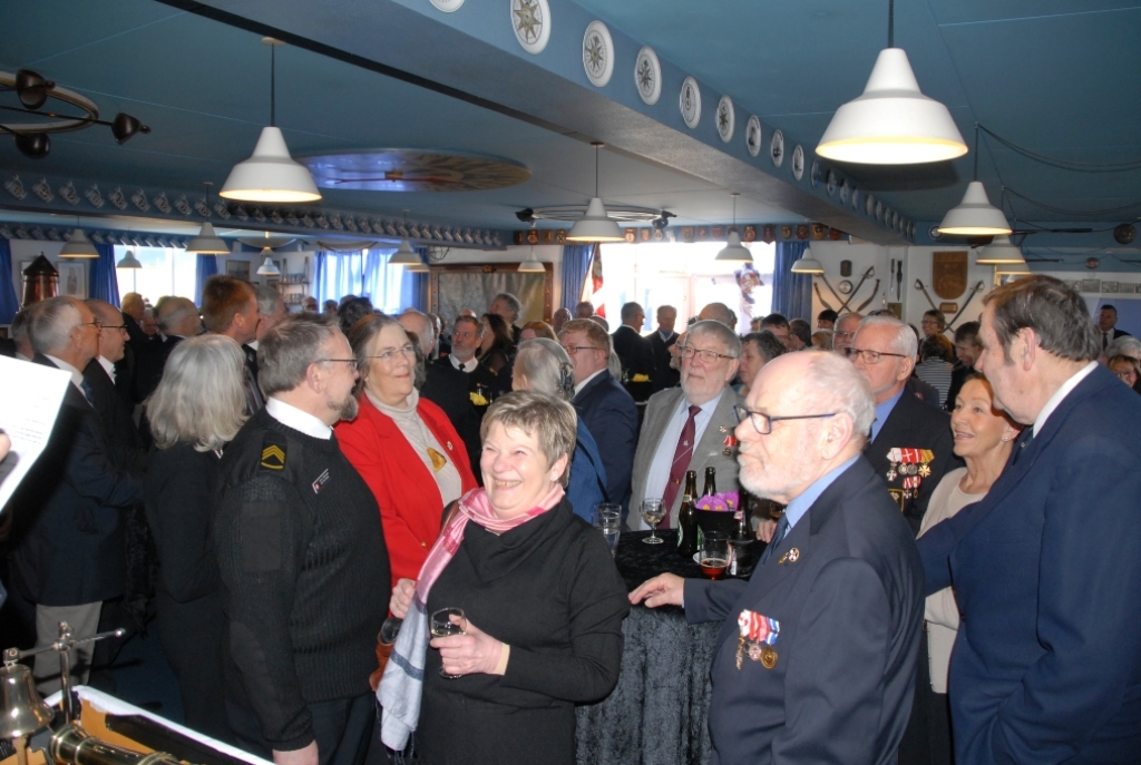 Stuen var fyldt til bristepunktet, ca. 200 gæster. Efter velkomst af formand Erich H. Franzen overtog tidl. formand, æresmedlem Jørgen Brøgger hvervet som toastmaster. - Der blev serveret "Marlenes luksus-canapéer", hvid Ebeltoft Marinevin, øl og vand.