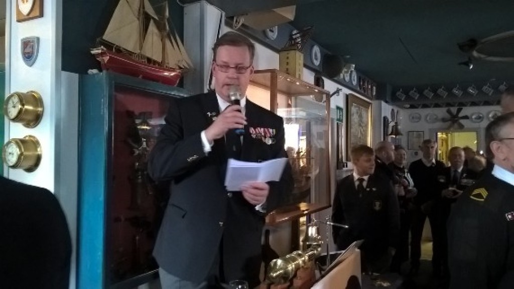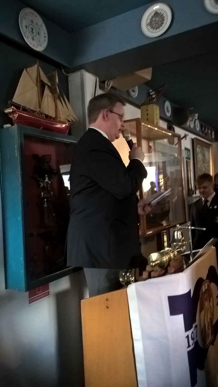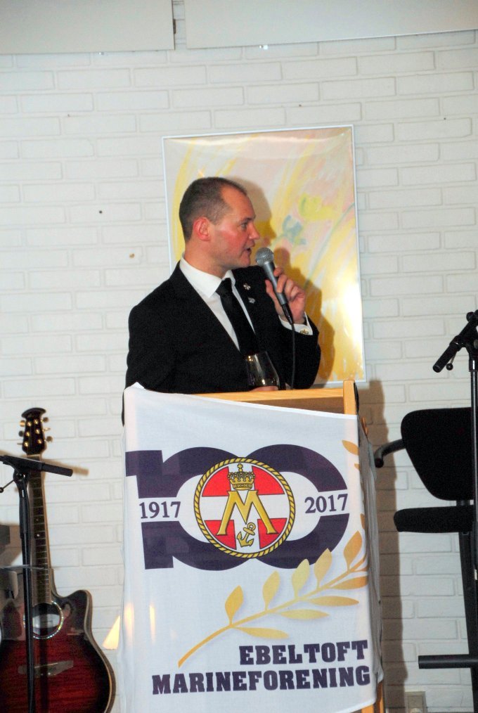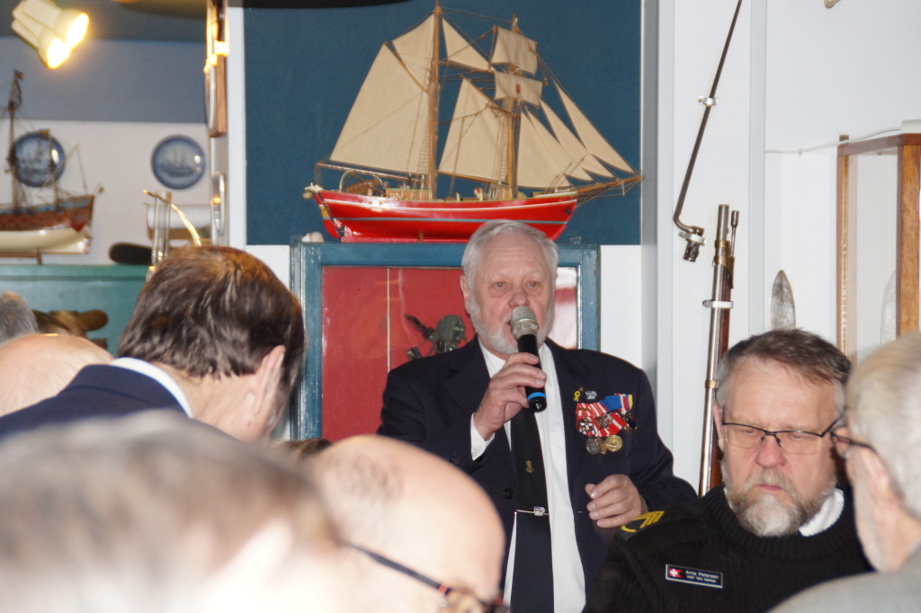 Efter flaghejsning og formandens velkomst tog sekretær Peter Brøgger over som aftenens toastmaster. Der var officielle taler af landsformand Jens Ole Løje Jensen, borgmester Claus Wistoft, PUK-udvalgsformand, 1. viceborgmester Kirstine Bille og - som "rosinen i pølseenden" en meget humoristisk tale til/for damerne ved orlogs- og sømandspræst emer. Ronald Pedersen.