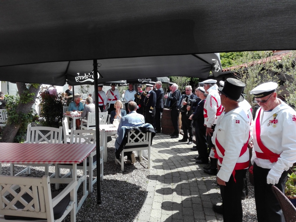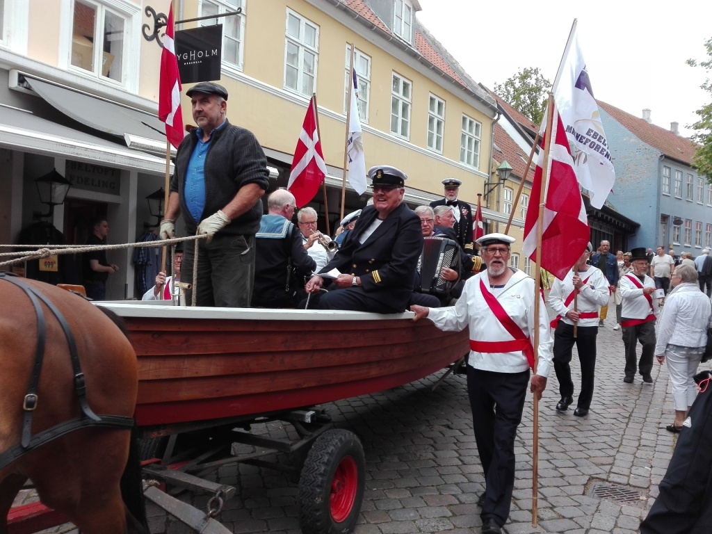 Traditionen tro vakte sejladsen liv og glæde i gadebilledet, og mange mennesker spurgte, hvad dette var for noget. Derfor havde vi også udarbejdet foldere, der dels fortalte om sluptraditionen, dels om fondet til støtte for de unge, der gerne vil have en søfartsuddannelse. Et meget populært indslag i bybilledet, der fik mange roser med på på vejen, - ikke mindst da vi optrådte på Karens Brasseri ved Fregatten Jylland og på Mellem Jyder.