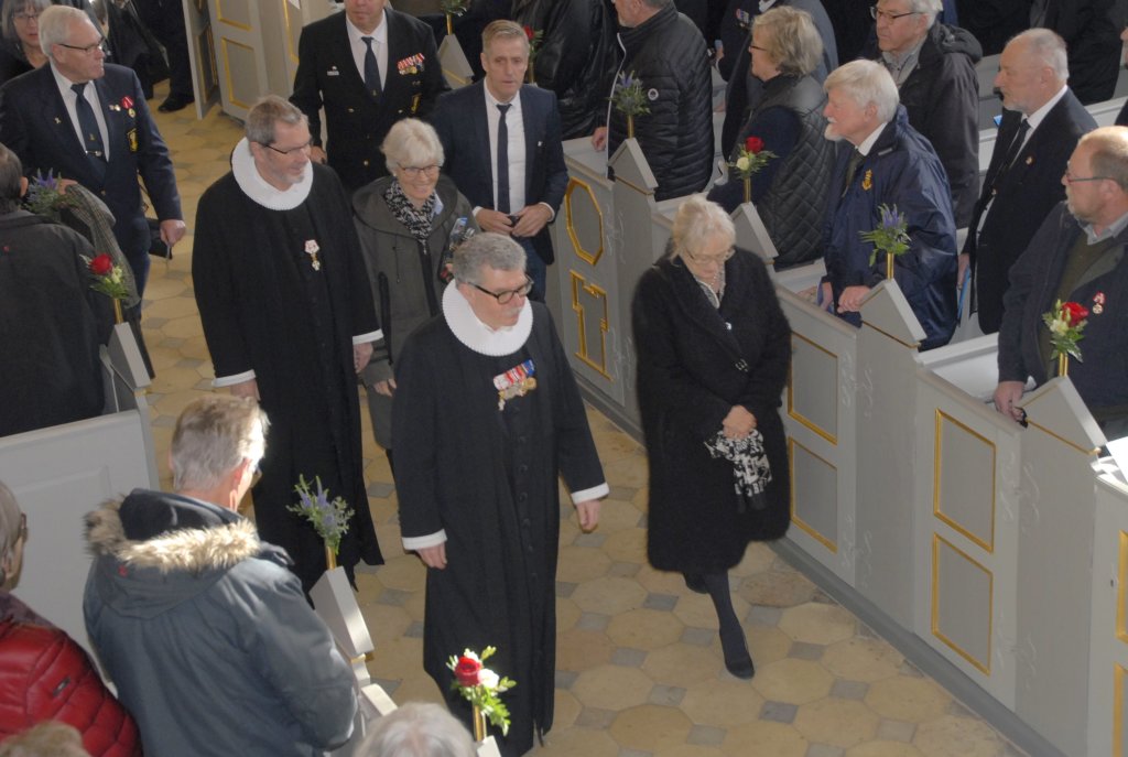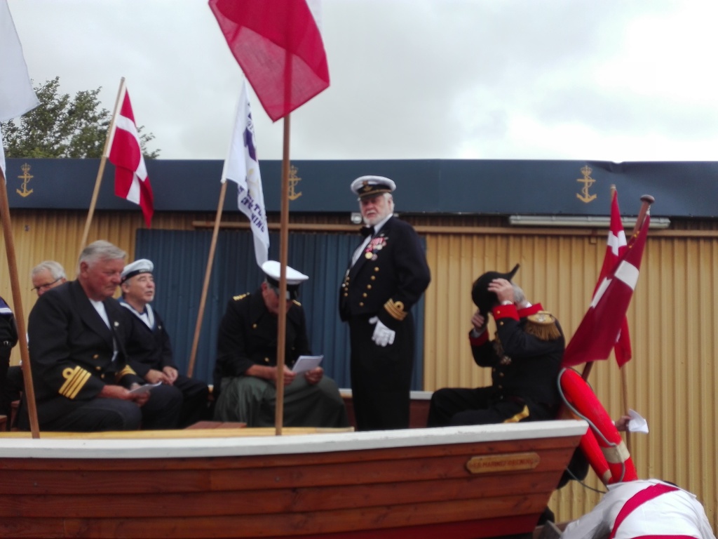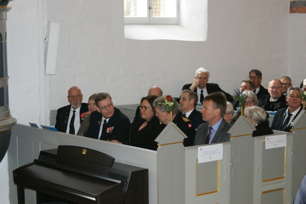 Vi havde fået Søværnets orlogsprovst, Ejgil Bank Olesen, Holmens Kirke, til at forrette Gudstjenesten sammen med vort eget medlem, tidl. generalsekretær for Dansk Sømandskirke i Fremmede Havne, orlogs- og sømandspræst emer. Ronald Pedersen. Desuden havde vi fået Søværnets Tamburkorps til at medvirke.