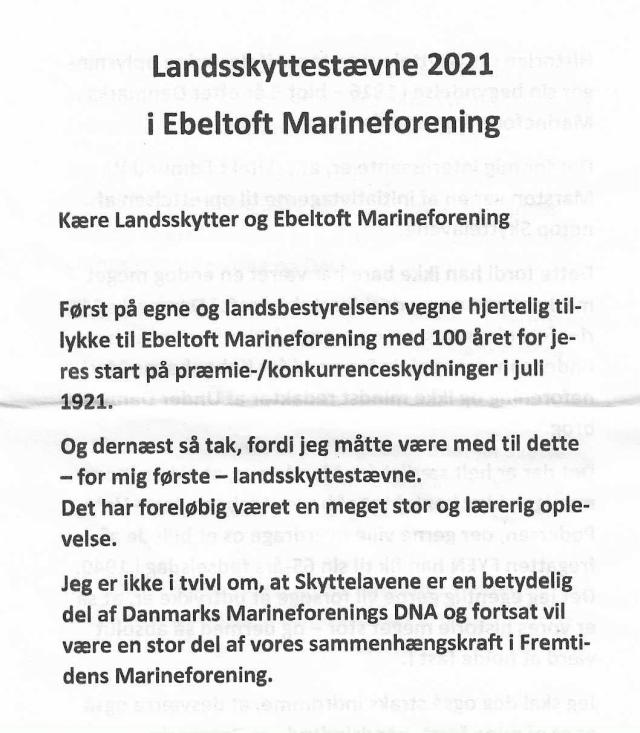 Landsformand KK Steen Engstrøms tale ved kammeratskabsaftenen den 2. oktober 2021 ved Landsskyttestævnet i Ebeloft