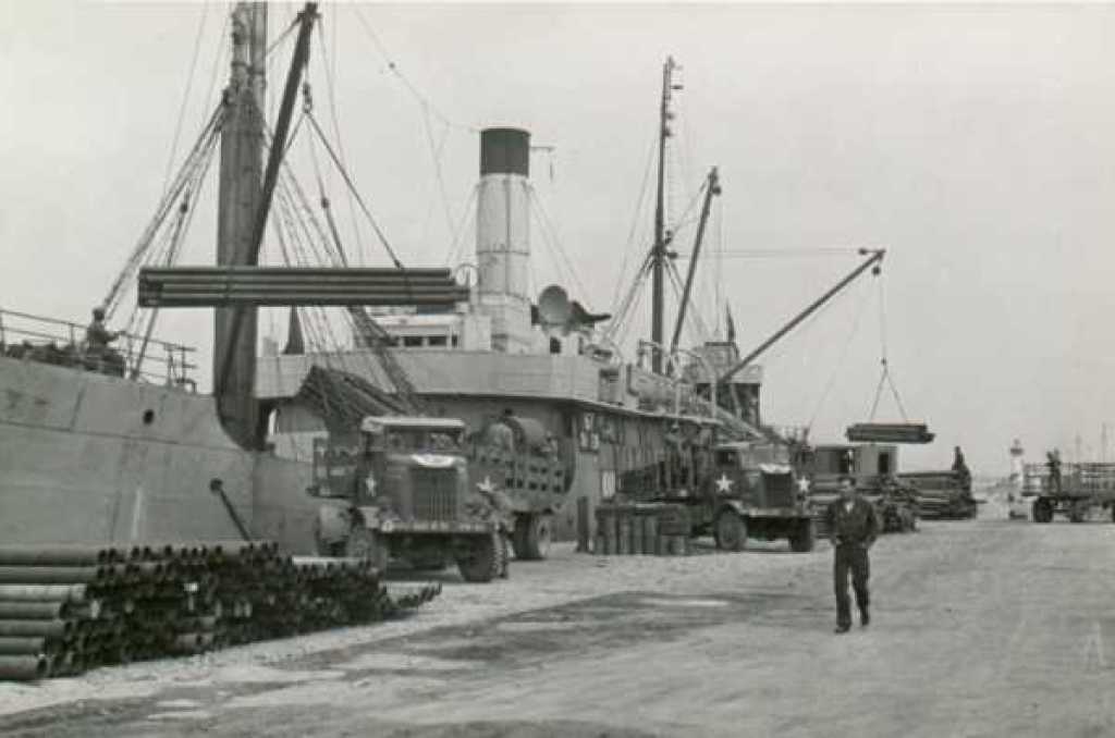 - Det danske handelsskib S/S Avance losser rør på invasionskysten i Normandiet, sommeren 1944