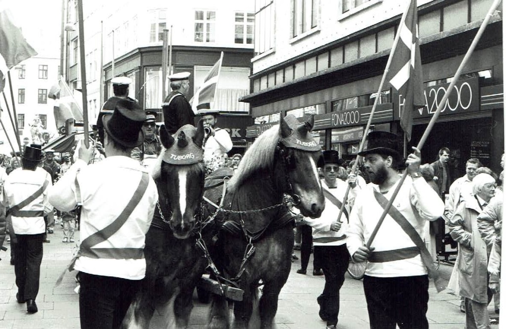 Både Sluppen og mandskabet var fragtet til København (og hjem igen) af Søværnet. Sluppen med Ebeltofts adoptionsskib "Skinfaxe" og mandskabet med bus. Gasterne ankom fredag aften og blev indkvarteret på marinekasernen på Holmen. Bryggeriet Tuborg havde velvilligt stillet bryggerheste og kusk til rådighed for sejladsens gennemførelse. Kusken virkede i starten noget "mut" - var formentlig træt af at skulle bruge en lørdag på "sådan noget pjat". Men der gik godt nok ikke lang tid, før han tøede op og blev begejstret, da han opdagede hvor festligt, det var. På sejladsen gennem byen samlede gasterne ind til Fregatten Jyllands restaurering, - der dermed fik PR endnu en gang. Og formand Christian Koudal kunne ved koncerten i Rådhushallen overrække Fregatdirektør Jørgen Petersen indsamlingsbøsserne med de indsamlede beløb. Iøvrigt bragte TV om aftenen et indslag fra den festlige sejlads.