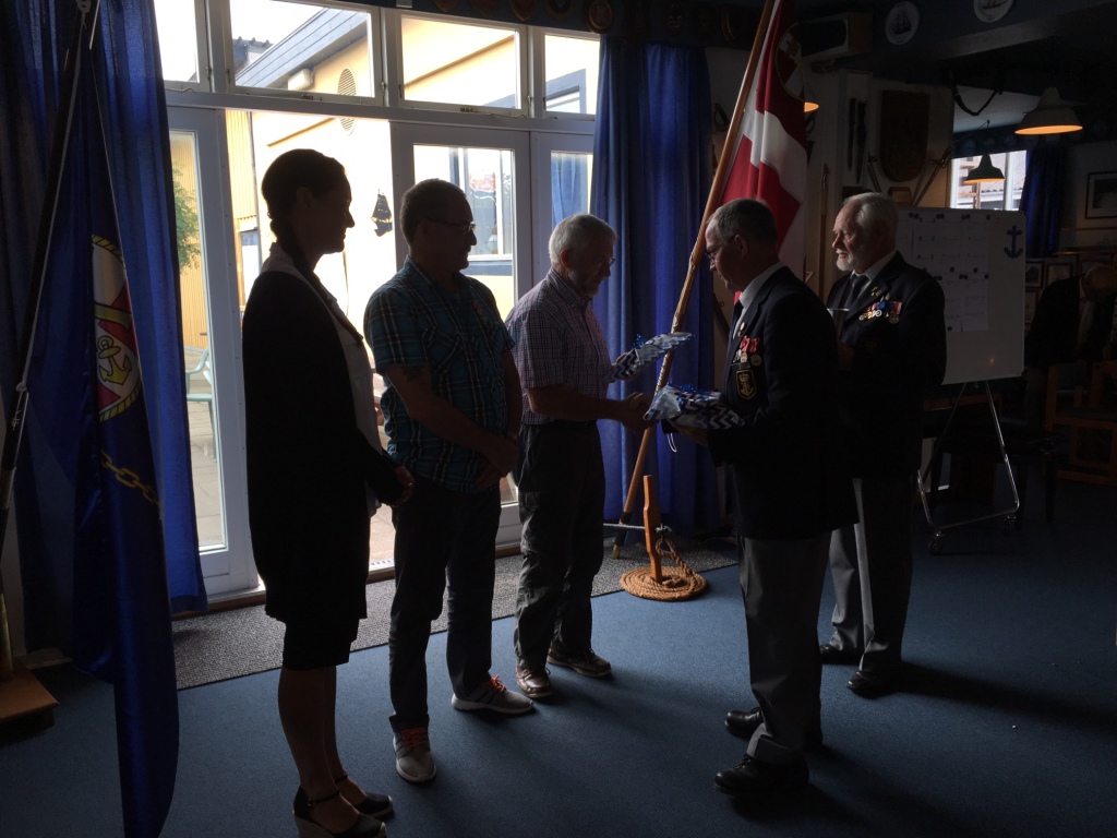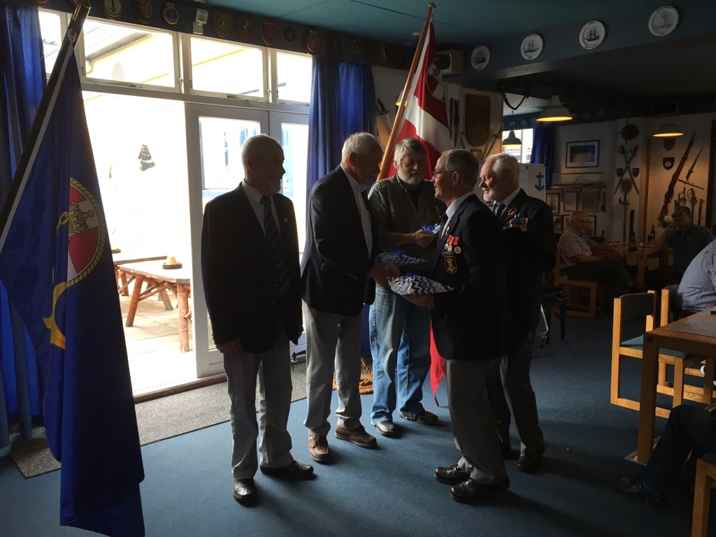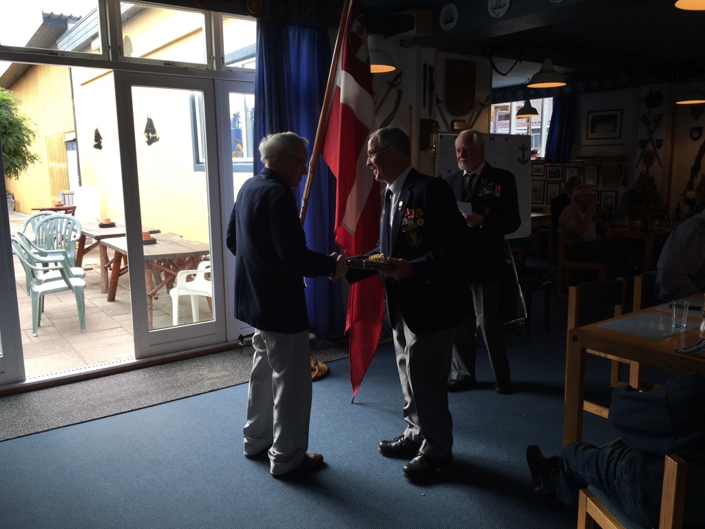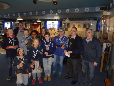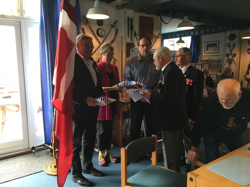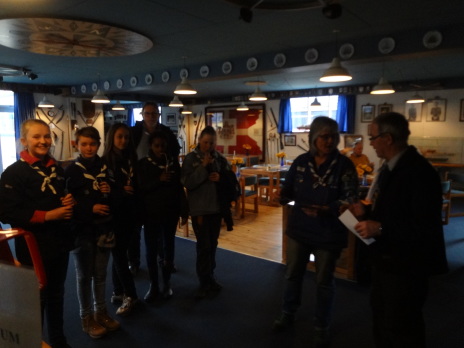 Søspejderne fra Mols var inviteret i Marinestuen for at modtage overskuddet fra årets Slupsejlads.