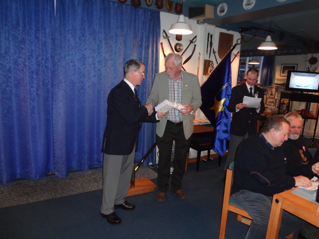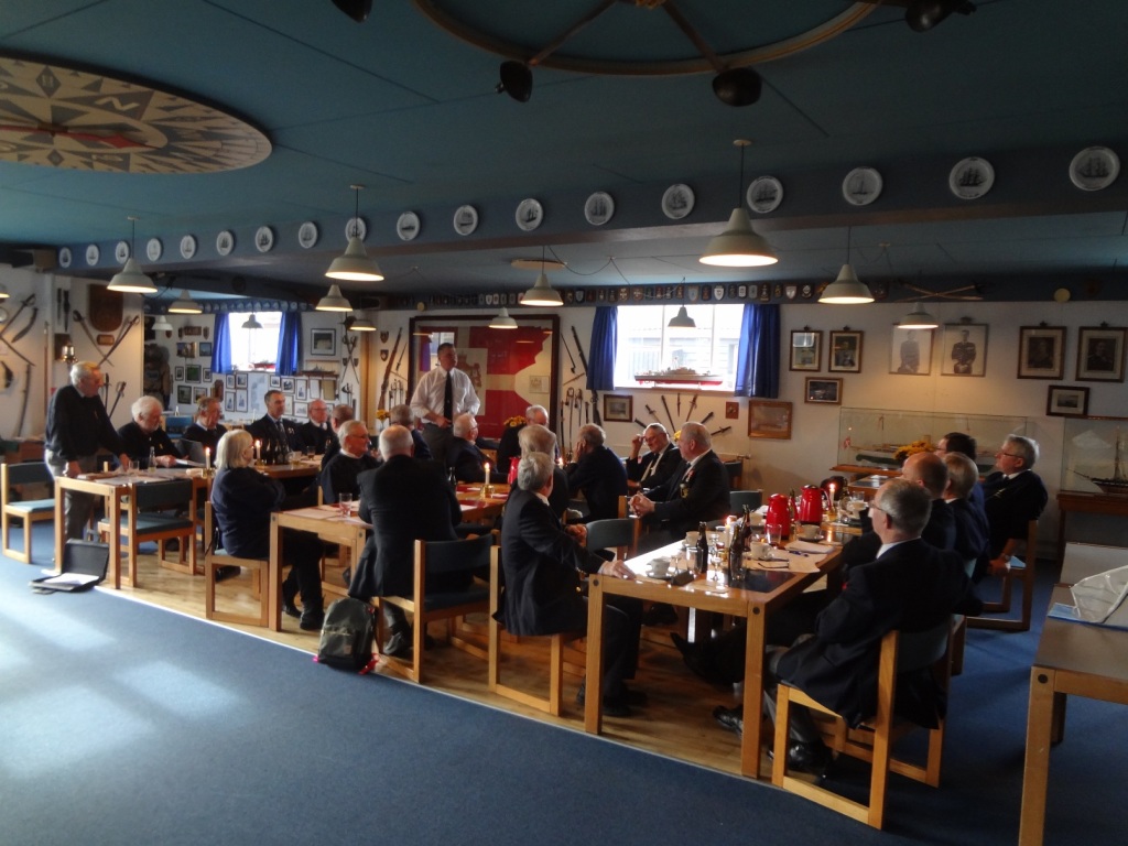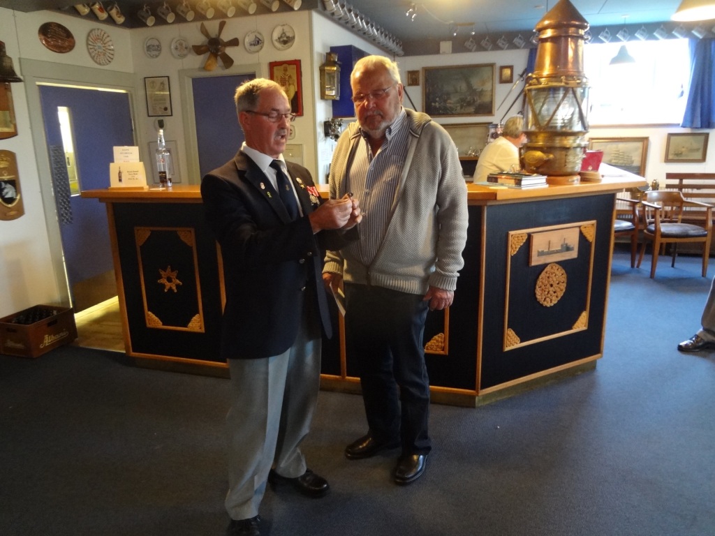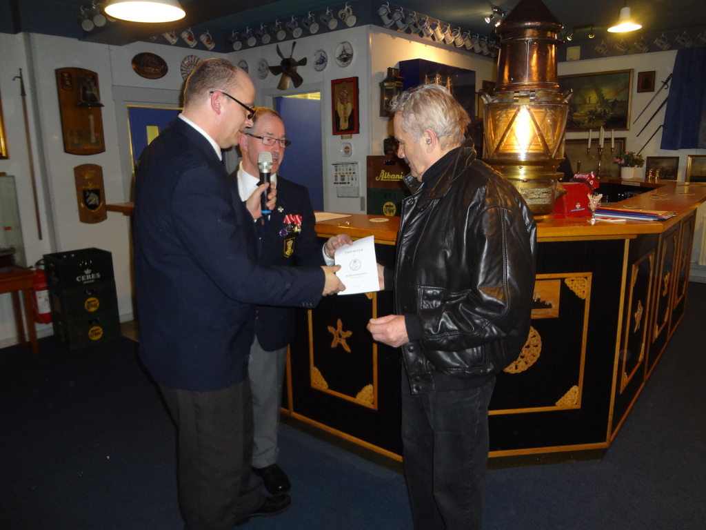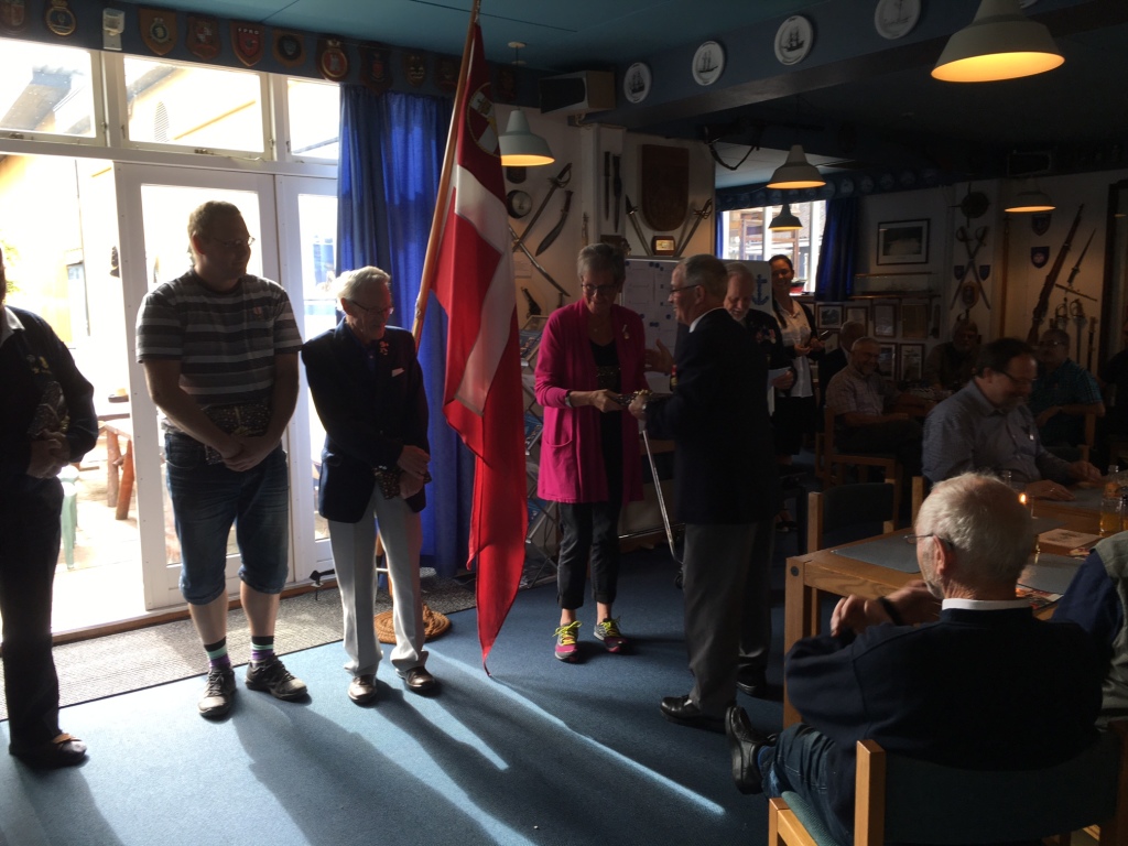 Søspejderne fra Mols var inviteret i Marinestuen for at modtage overskuddet fra årets Slupsejlads.