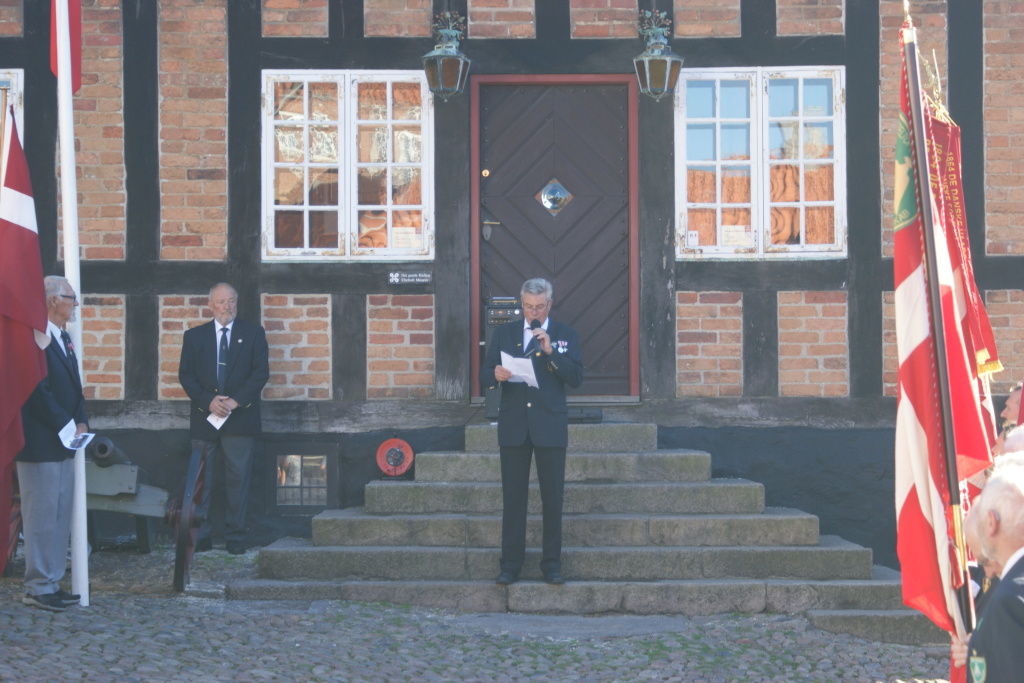 Talen blev i år holdt af formand Erich H. Franzen. - Foruden vort eget flag deltog der faner fra Vaabenbrødreforeningen og De Blå Baretter. - Traditionen sluttedes af med hyggeligt samvær med kaffe, brød og en dram i Marinestuen.