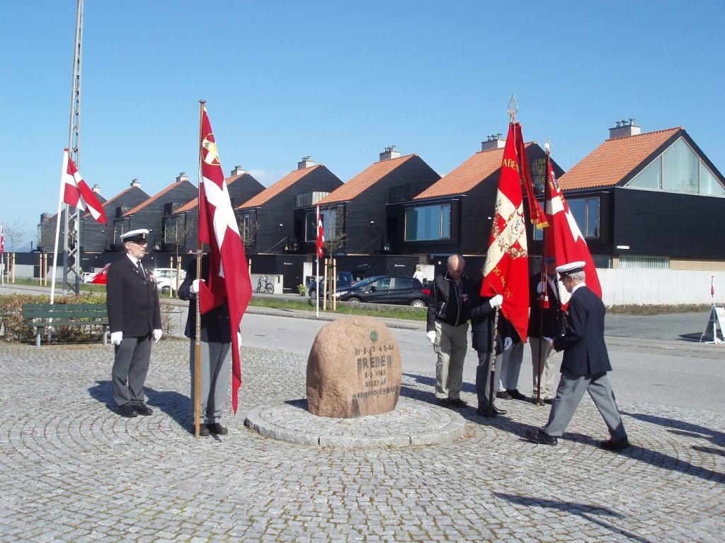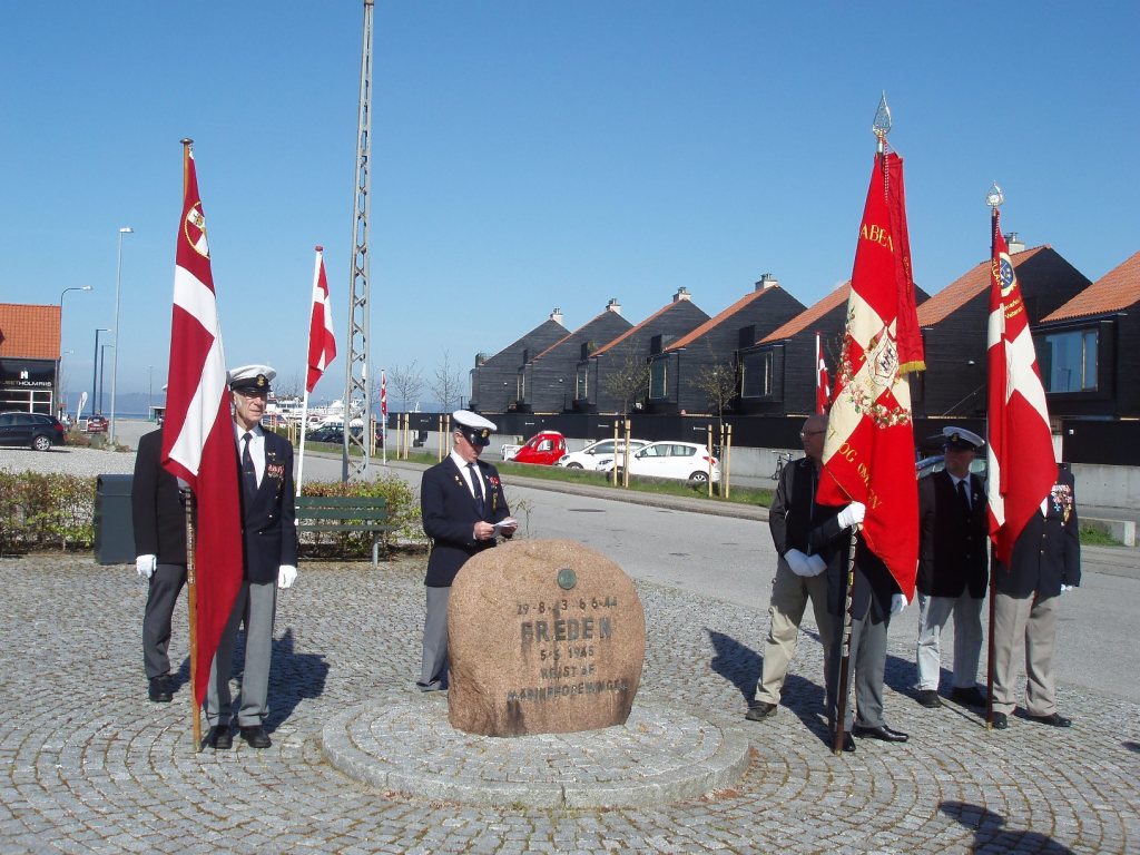 Mindehøjtidelighed ved foreningens mindesten på Havnen i anledning af 71-års for Danmarks befrielse efter den tyske besættelse, 1940-45.