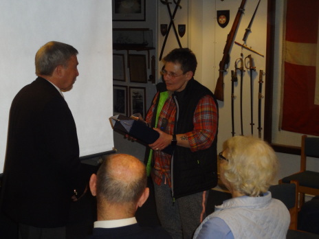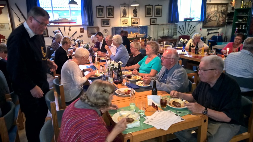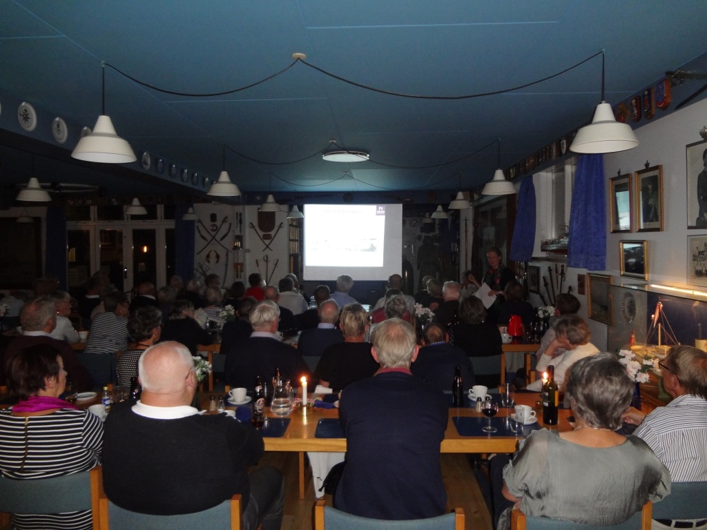 Traditionen tro indledtes denne, den sidste kammeratskabsaften i "sæsonen" med fællesspisning (hovemesterens enebærgryde), hvrtil vi selvfølgelig havde vore bedre halvdele med. - Efter spisningen blev ordet givet til "Mama Doc" - Wiera Malamá Jensen, der under overskriften "Krigslæge på mission" fortalte om sine oplevelser som militærlæge rundt i verden og om sine oplevelser ved fronten i bl.a. Irak og Afghanistan. Wiera er Danmarks mest erfarne militærlæge og gennem hendes udsendelser for Forsvaret har hun fået et andet indblik i krigens vilkår, end de udsendte soldater. - Det var et helt fantastisk og medrivende foredrag !