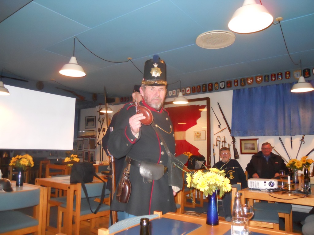 Vi havde besøg af Foreningen Jyske Landsoldater, der - iført gamle uniformer - fortalte om De Sønderjyske Krige, 1848-51 og 1864 med særlig fokus på sidstnævnte. En utrolig interessant aften, hvor landsoldaterne også demonstrerede nogle af de våben, der i 1864 blev anvendt på h.h.v. dansk og prøjsisk side, - samt meget andet af landsoldatens personlige udstyr, - hvoraf den lange pibe ikke var det mindst vigtige.
