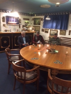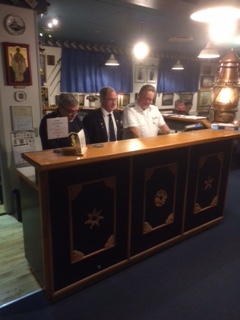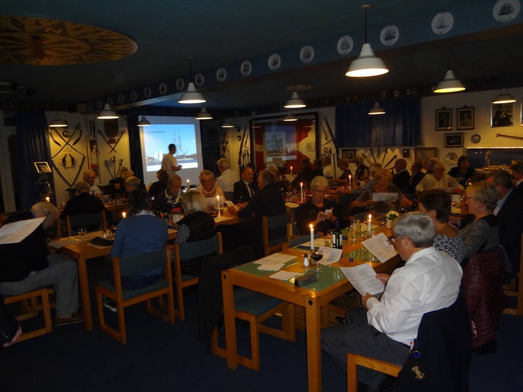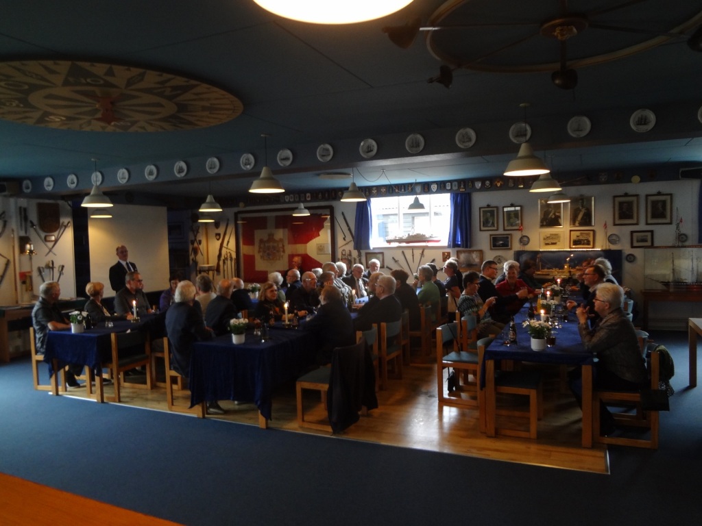 Vi havde besøg af den nye direktør for den selvejende Institution Fregatten Jylland, der fortaslte om Fregatten Jyllands plads i fremtiden og hvilke visioner og konkrete planer og idéer, han har på Fregattens vegne. - En meget interessant aften, der traditionen tro var med ægteføælle/ledsager og indeledende fælelsspisning (hovmesterens erverede "2 slags farsbrød med sødt & surt"). - Ved synet af modellen af "Enhjørningen" fik Lars H. Olsen idéen til en udstilling af modelskibe, udlant af marineforeningerne i Danmark.