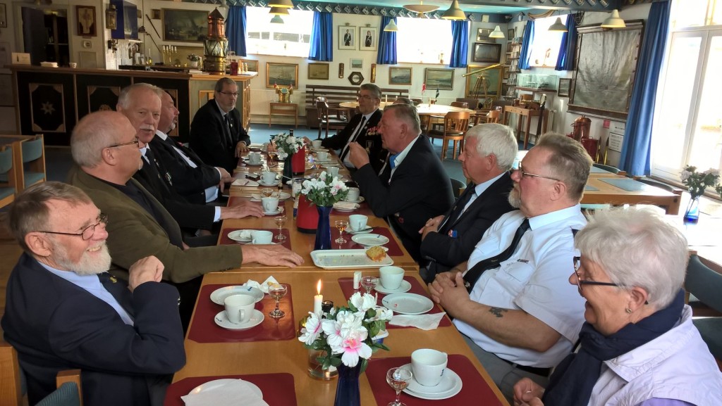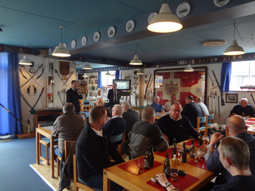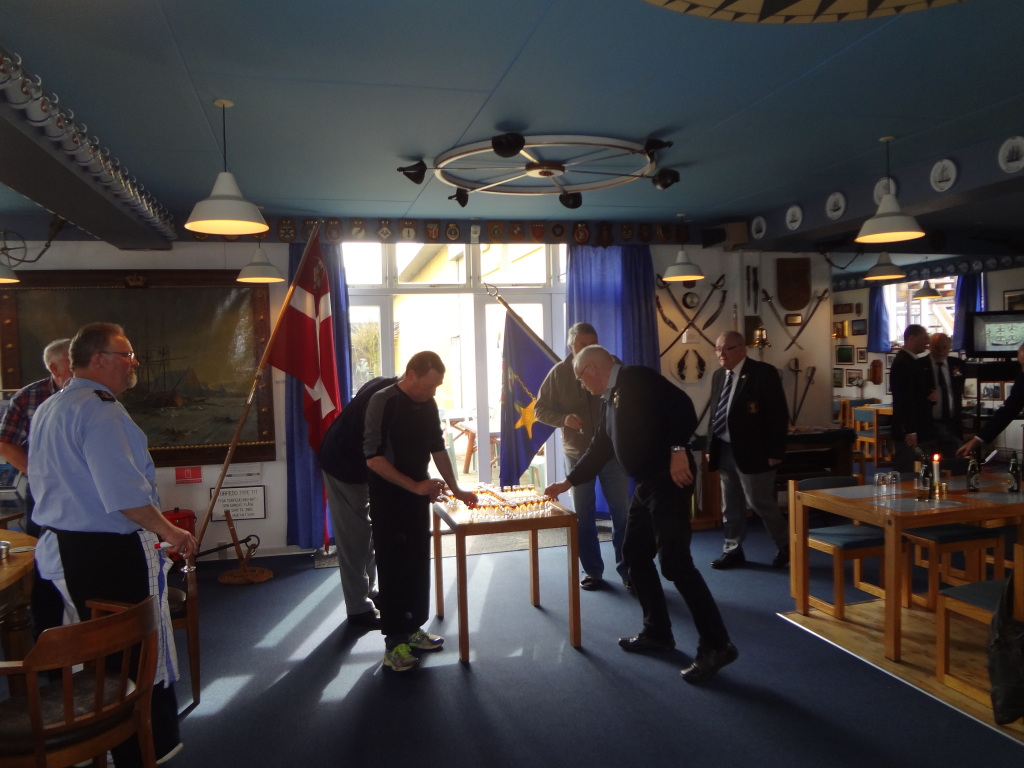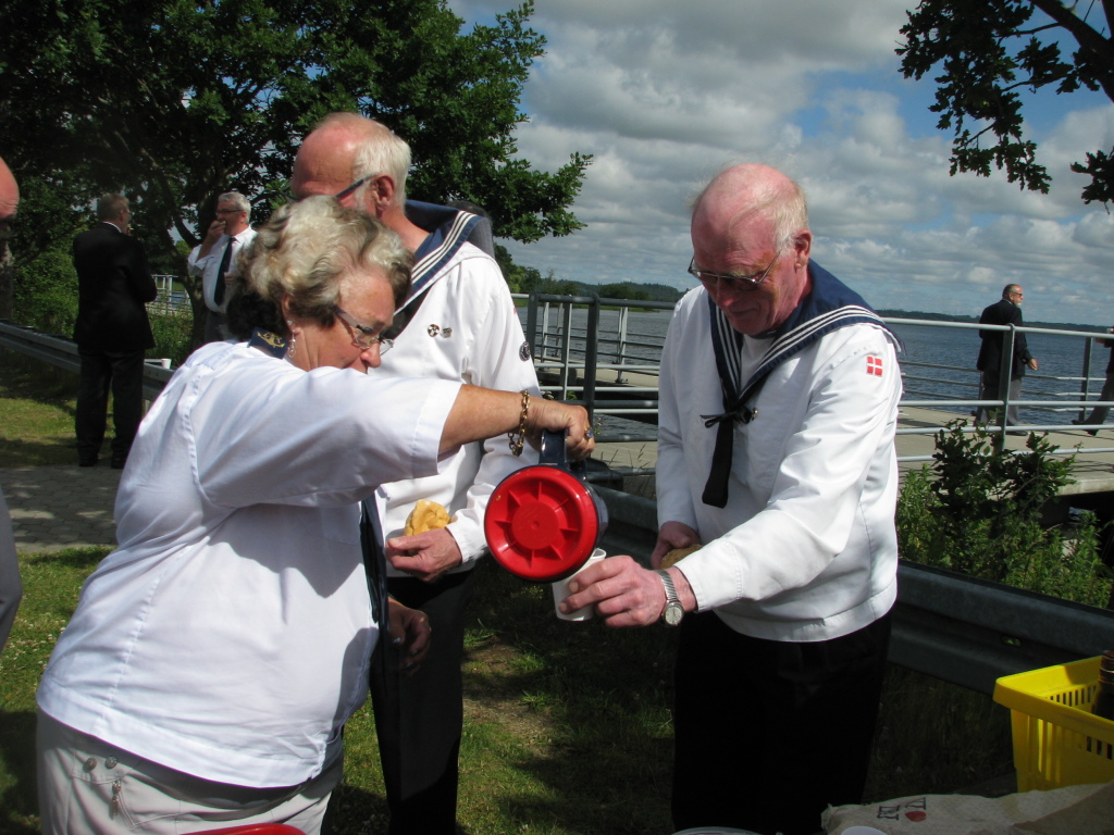 Efter højtideligheden var foreningen vært ved en kop kaffe med brød i Marinestuen, hvor de, der satte livet til dengang, blev æret med en stående skål.