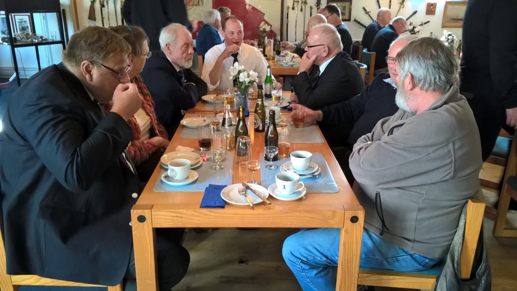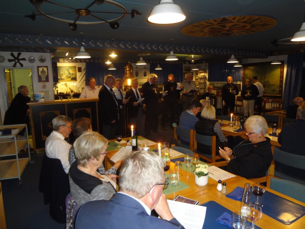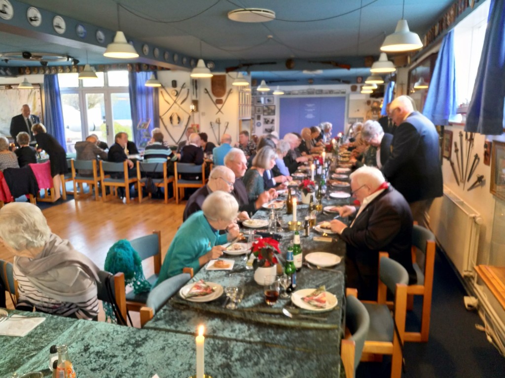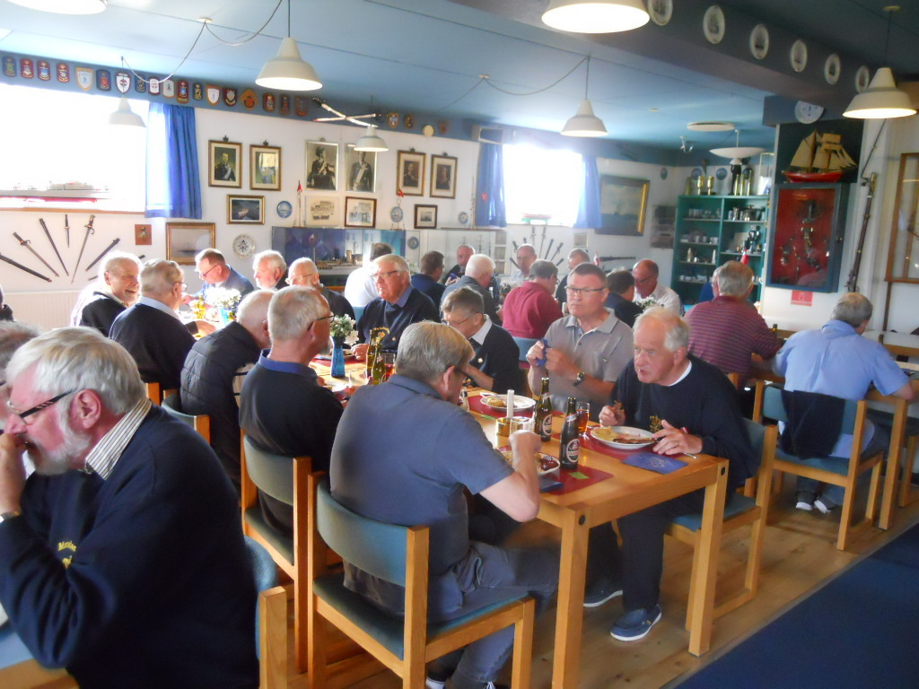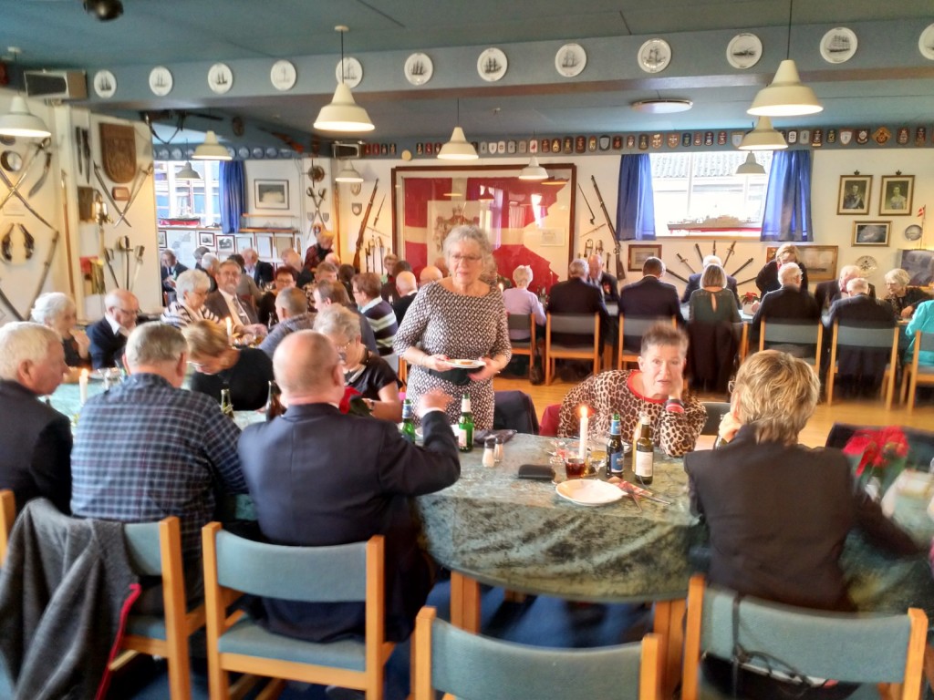 Efter højtideligheden var foreningen vært ved en kop kaffe med brød i Marinestuen, hvor de, der satte livet til dengang, blev æret med en stående skål.
