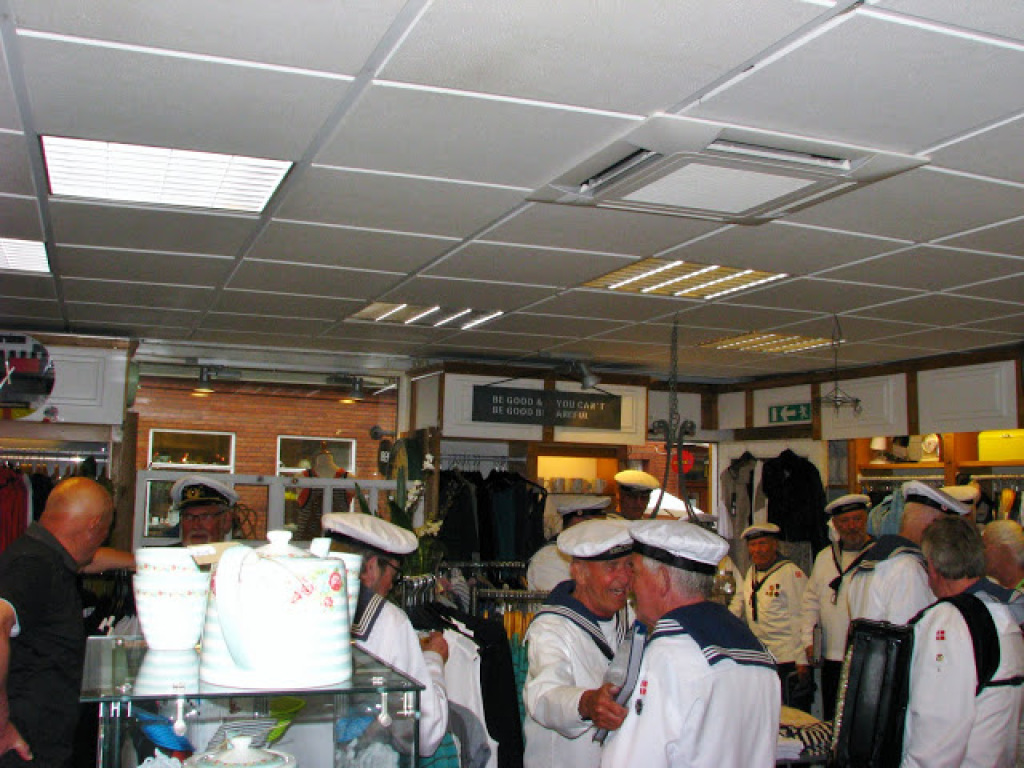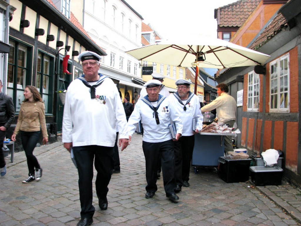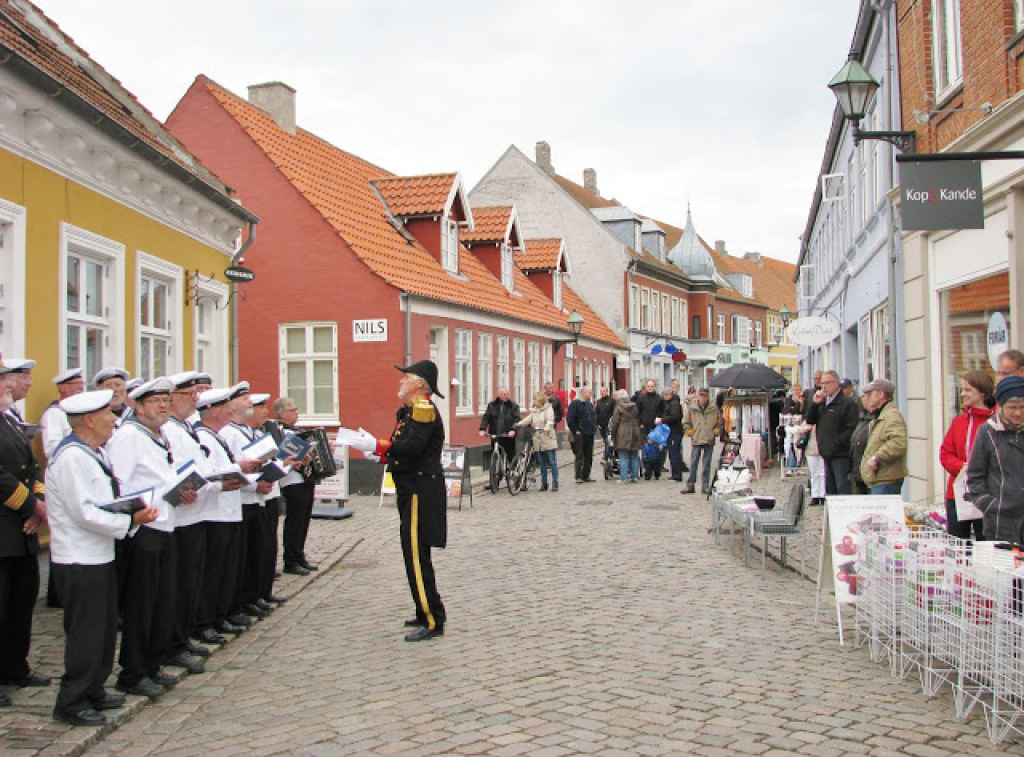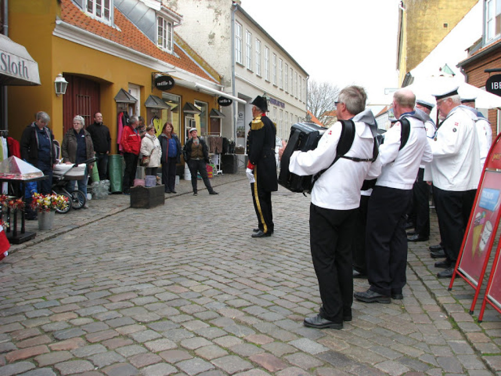 Butikkerne i byen havde åbent denne Langfredag og havde derfor engageret Slupkoret til at synge i gaderne.