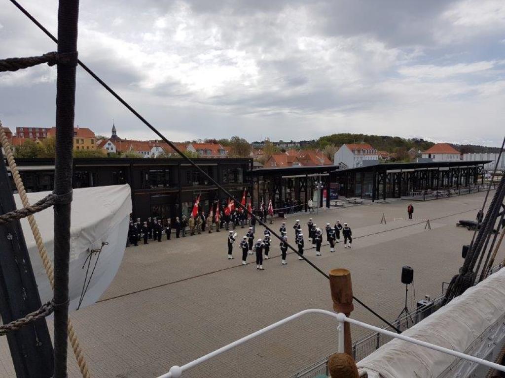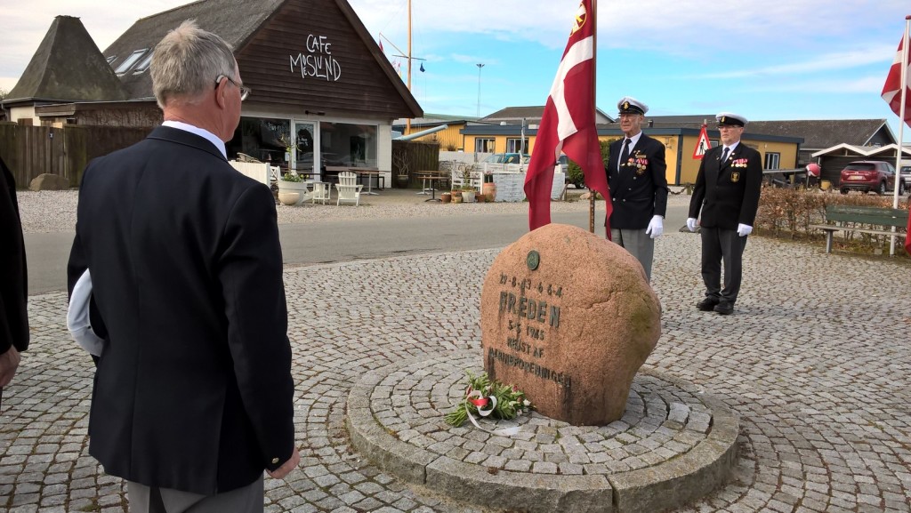 Traditionen tro afholdtes en lille højtidelighed ved foreningens mindesten på havnen i anledning af 72-årsdagen for Befrielsen efter den tyske besættelse 1940-45. Formand Erich. Franzen lagde den rød-/hvide blomsterbuket, og tidl. generalsekretær for Dansk Sømandskirke, orlogs- & sømandspræst emer. Ronald Pedersen holdt mindetalen. Mindestenen var flankeret af foreningens eget flag og Danmarks Veteraners fane.