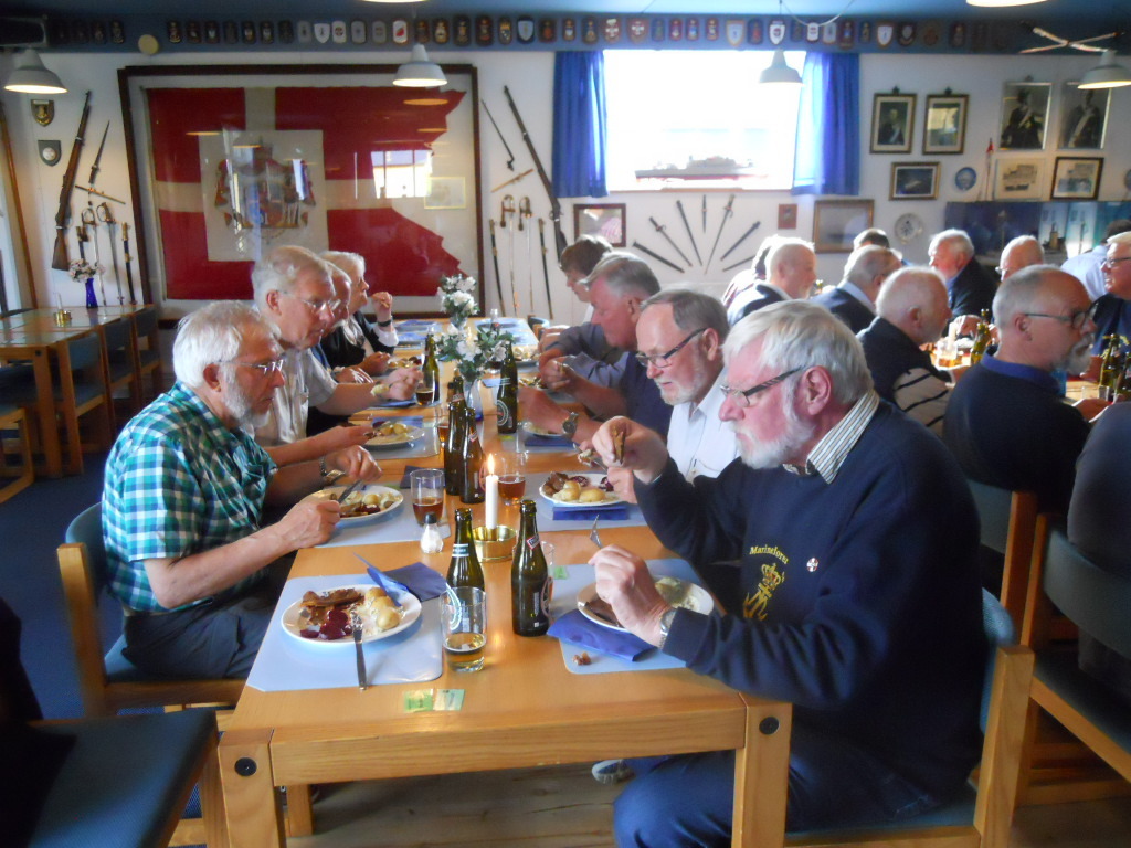 Som altid var den sidste kammeratskabsaften i sæsonen med ægtefælle/ledsager og indledende fællesspisning. Menuen stod denne gang på sprængt svinekam m. peberrodssovs, kartofler og gemyse.