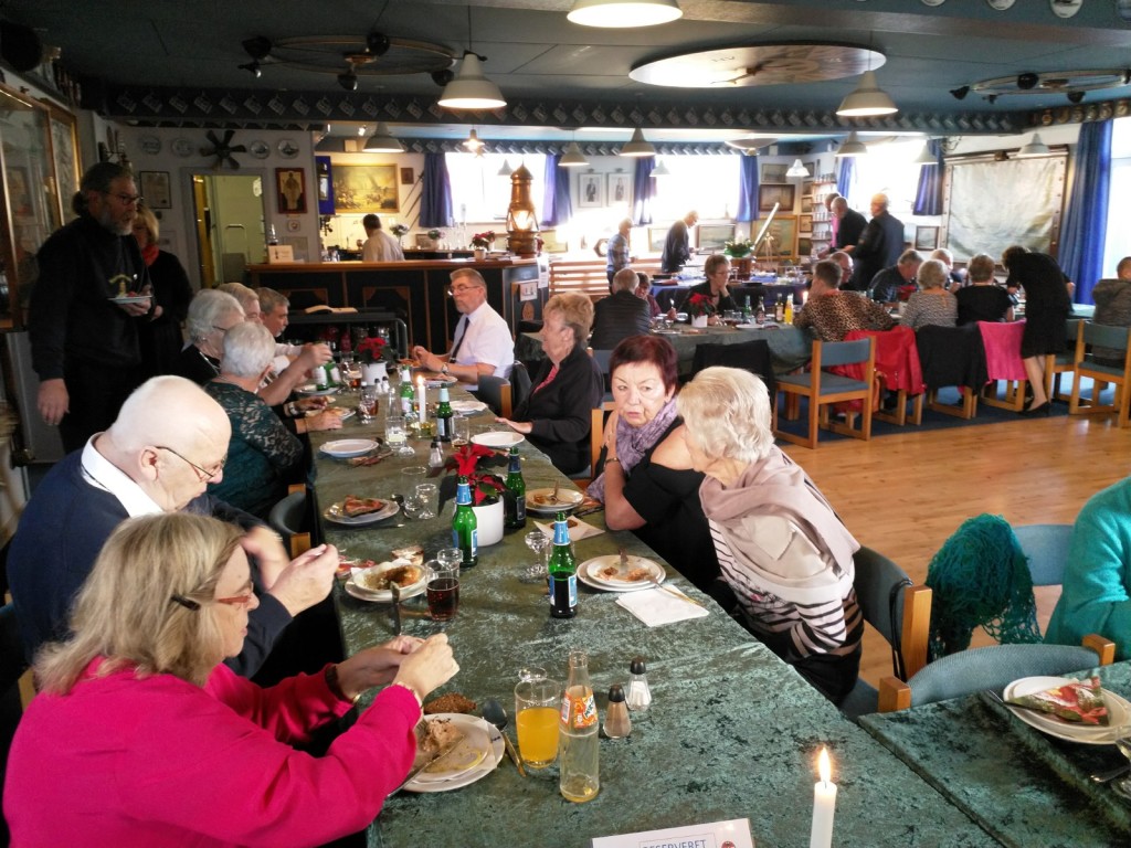 Den traditionelle, hyggelige og festlige julefrokost med god deltagelse. I år endda med levende musik fra "vores egen spillemand", Preben Holst, der virkelig fik sat gang i stemningen og sangene.