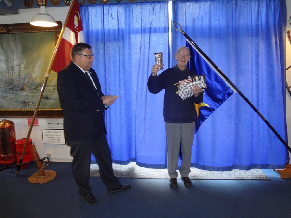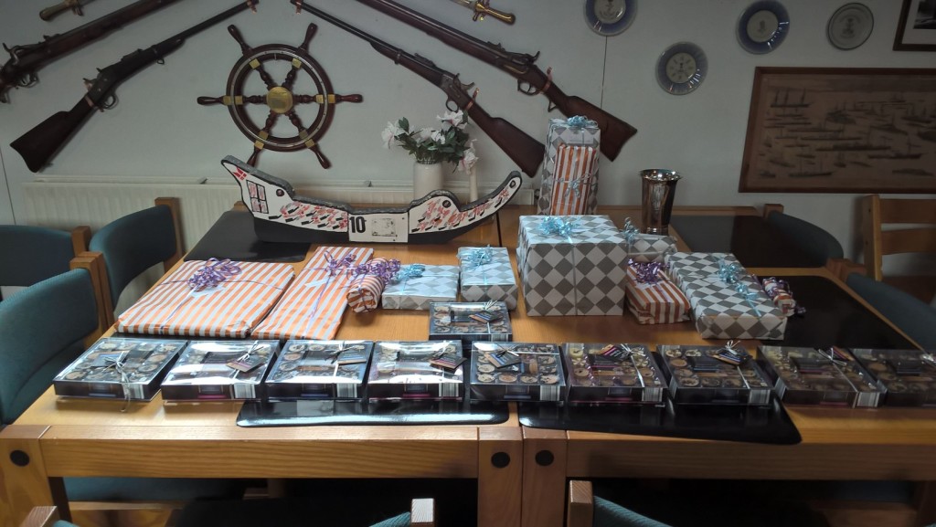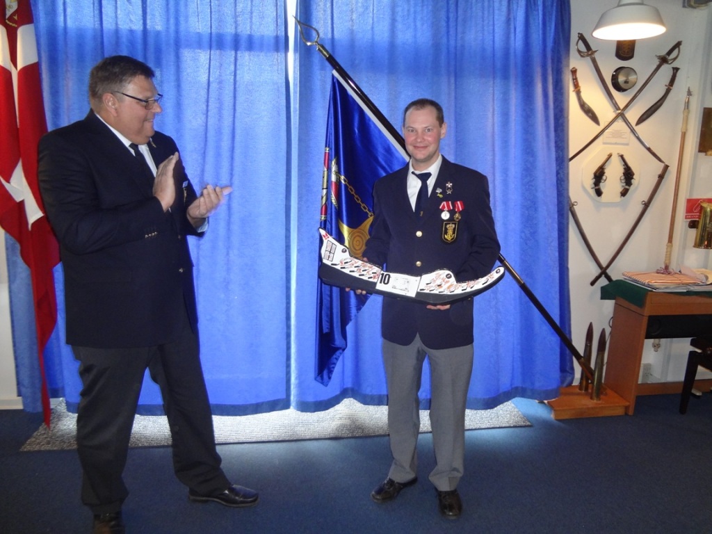 Inden den nye Fregatkaptajn fik overrakt pokal og præmier fik den afgående Fregatkaptajn traditionen tro overrakt skroget fra sidste års Fregatskydning.