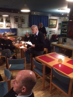 God, rolig og saglige generalforsamling her i 100-års jubilæumsåret. Mark Bjerg blev optaget som nyt medlem. Han er 18 år, - og derved kom foreningens gennemsnitsalder ned med ½ år ! Også Jens kristian Meller Thomsen blev optaget som nyt medlem. Niels Poulsen, der nu i 10 år har lagt et stort arbejde i Kabysrygtets lay-out og fremstilling blev fortjent tildelt Marineforeninegns Hæderstegn i sølv. Vagn Lassen modtog 50-årstegnet; han har dermed været medlem i nøjagtig halvdelen af foreningens levetid.Der var 40-års tegn til Brian Aistrup, Ove Mikkelsen og Oluf Oxholm (kun Ove Mikkelsen var tilstede) samt 25-årstegn til Niels aage Thomsen, Ingvardt Christensen, Ole Bjerregaard,Anker Gindesgaard, Erik Hebsgaard Kurt Petersen, Niels Iver Sørensen og Per Krogh Madsen Ole Bjerregaard og Anker Ginbdesgaard var forhindrede i at være tilstede, og vil derfor tegnet overraklt ved en senere lejlighed.