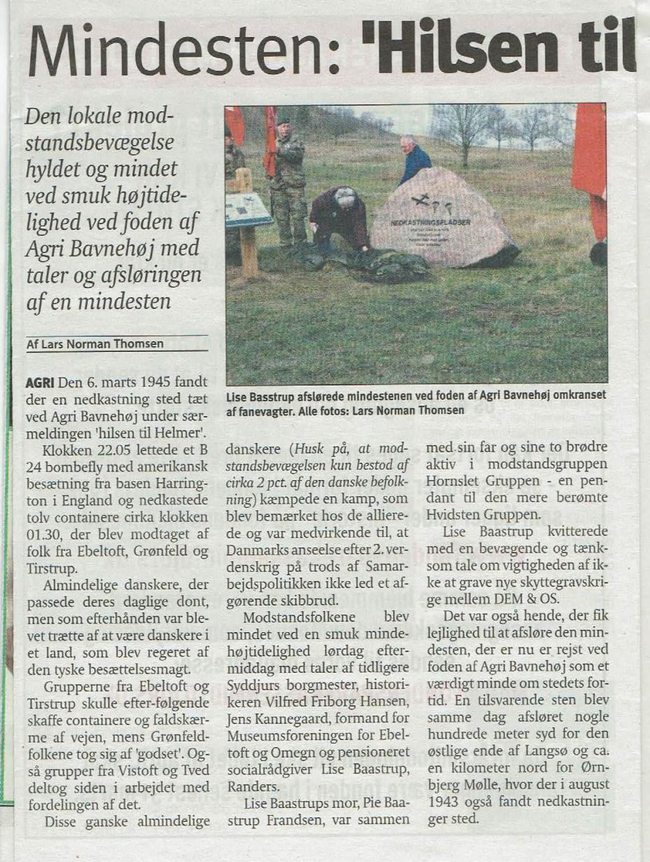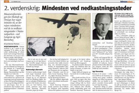 Avisreportage fra afsløringshøjtideligheden, Adresseavisen Syddjurs, 11. marts 2020