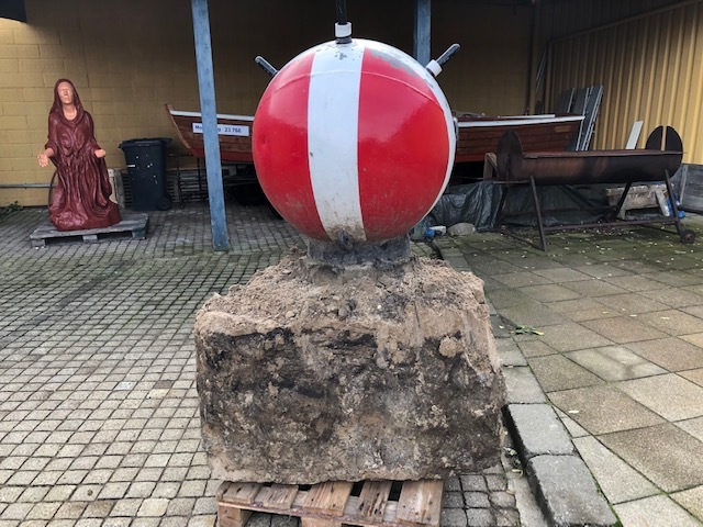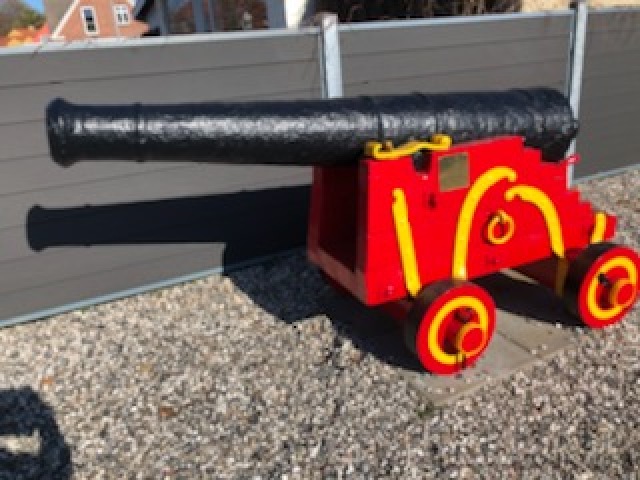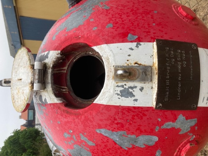 Minebøssen fra Det Gamle Rådhus er flyttet til gården ved Marinestuen