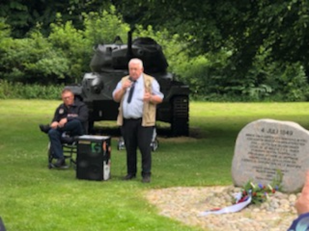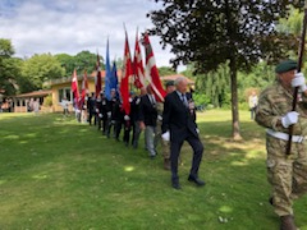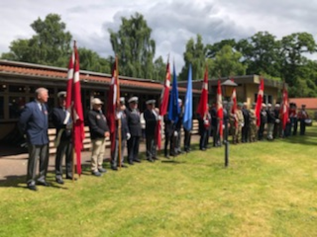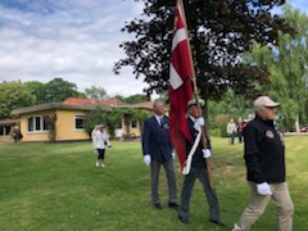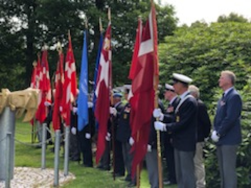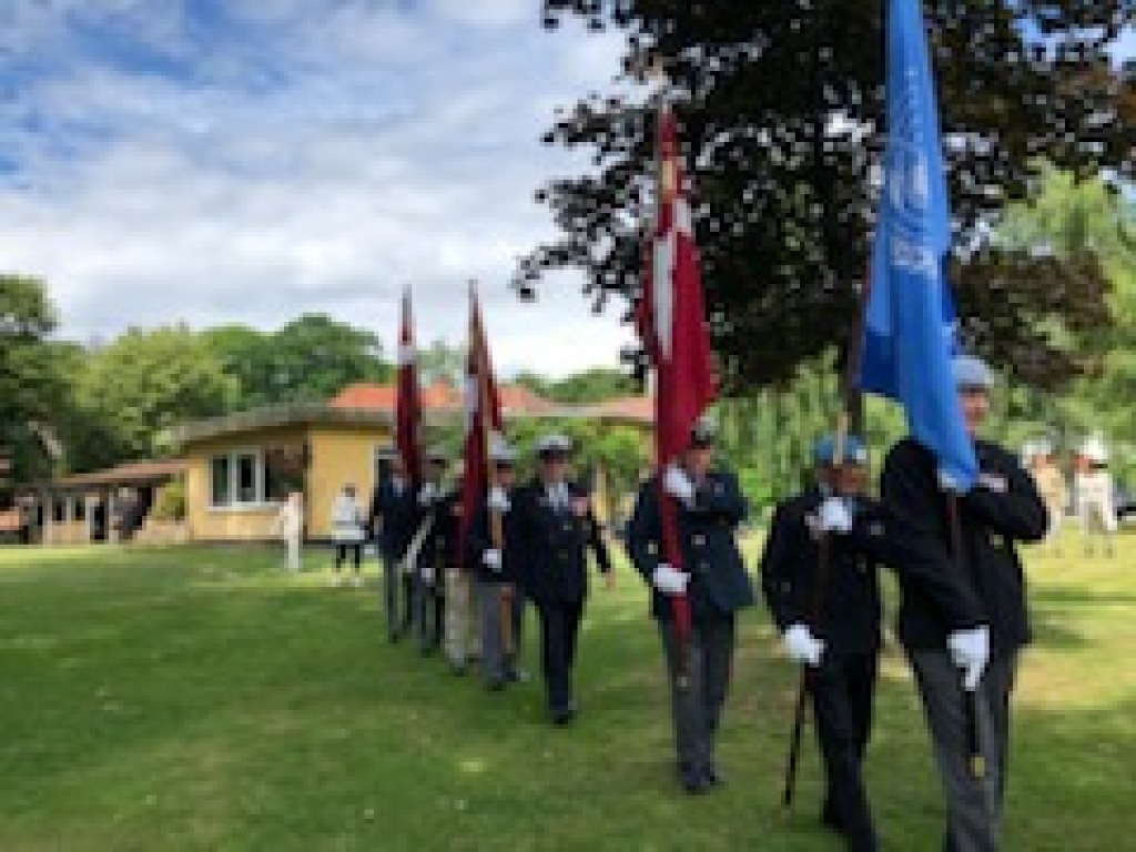 Ebeltoft Marineforenin g var - selvfølgelig - "på plads", da den årlige mindehøjtidelighed i "Danske Soldaters Mindelund" blev afviklet den 4. juli 2022. Foreningen var repræsenteret ved flagbærer John Rosborg, Lillian Jensen og Jørgen Brøgger. Derudover deltog distriktsformand Lars Gjættermann på en af vores pladser, som vi havde overladt til ham i hans egenskab af Distriktsformand, - da der jo var tale om et officielt arrangement, der fasndt sted i hans distrikt. Lars Gjættermann fungerede endvidere som fklaggast for flagbærer John Rosborg.