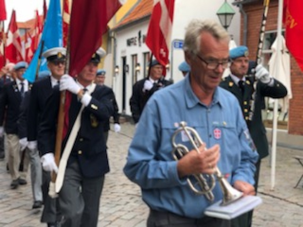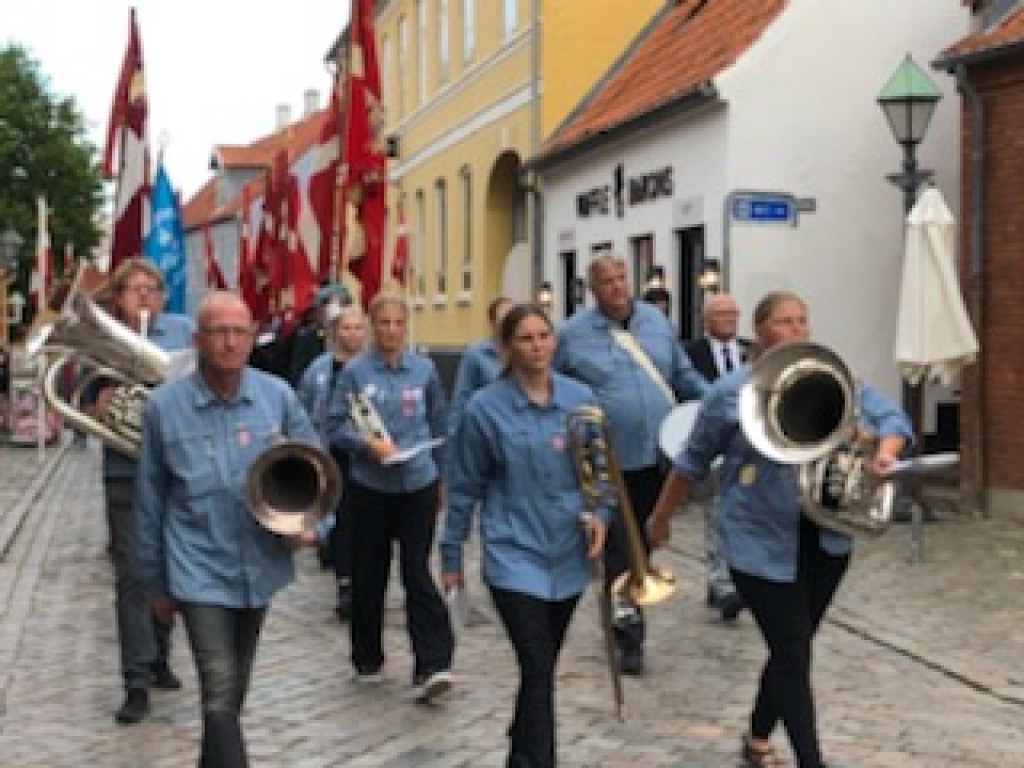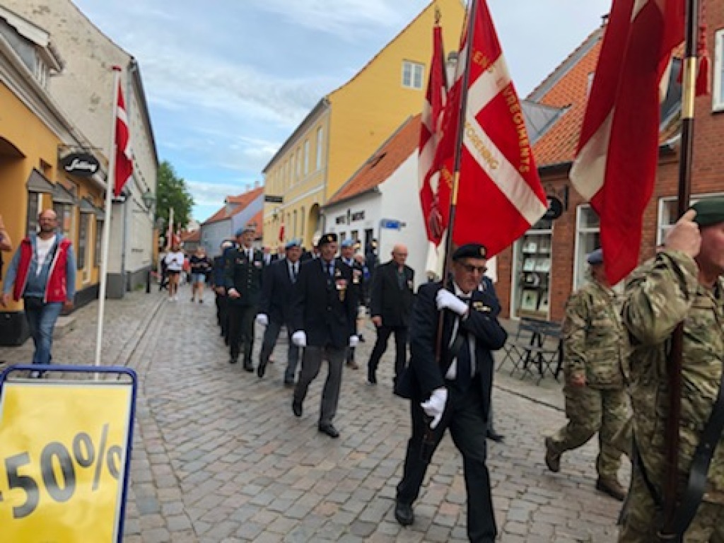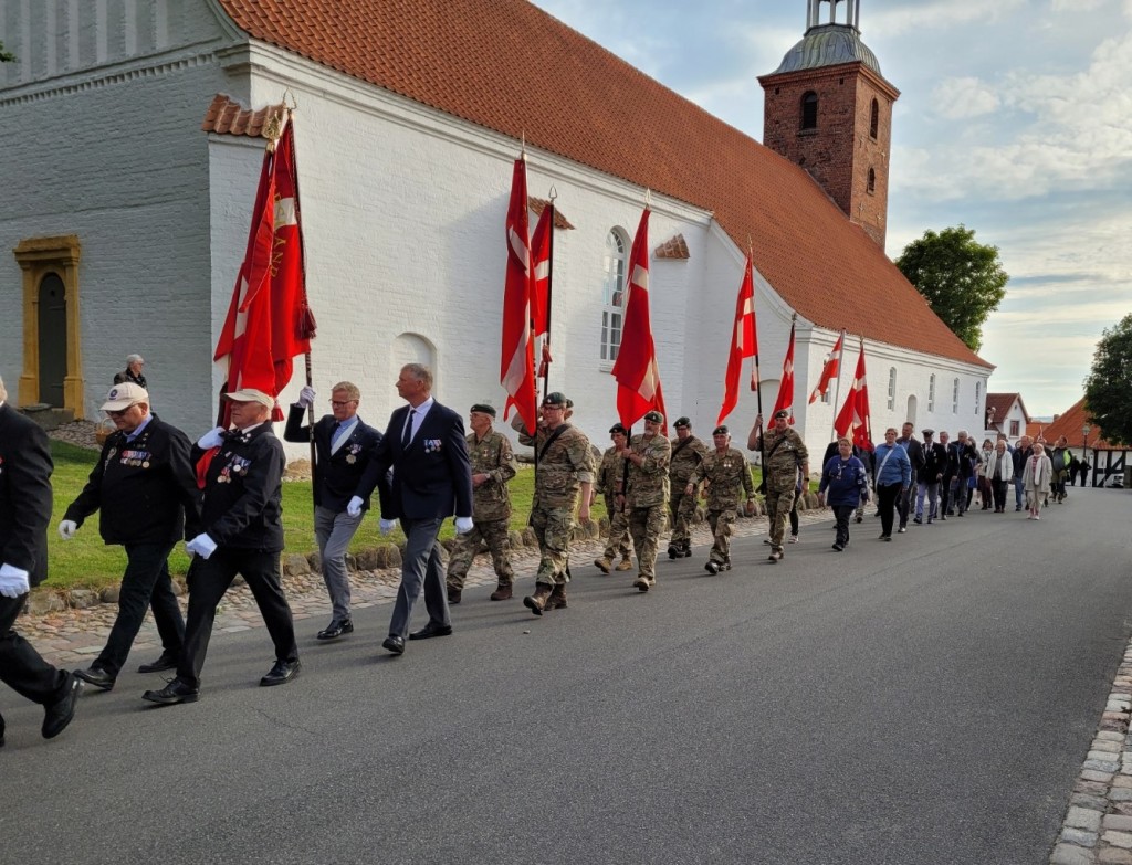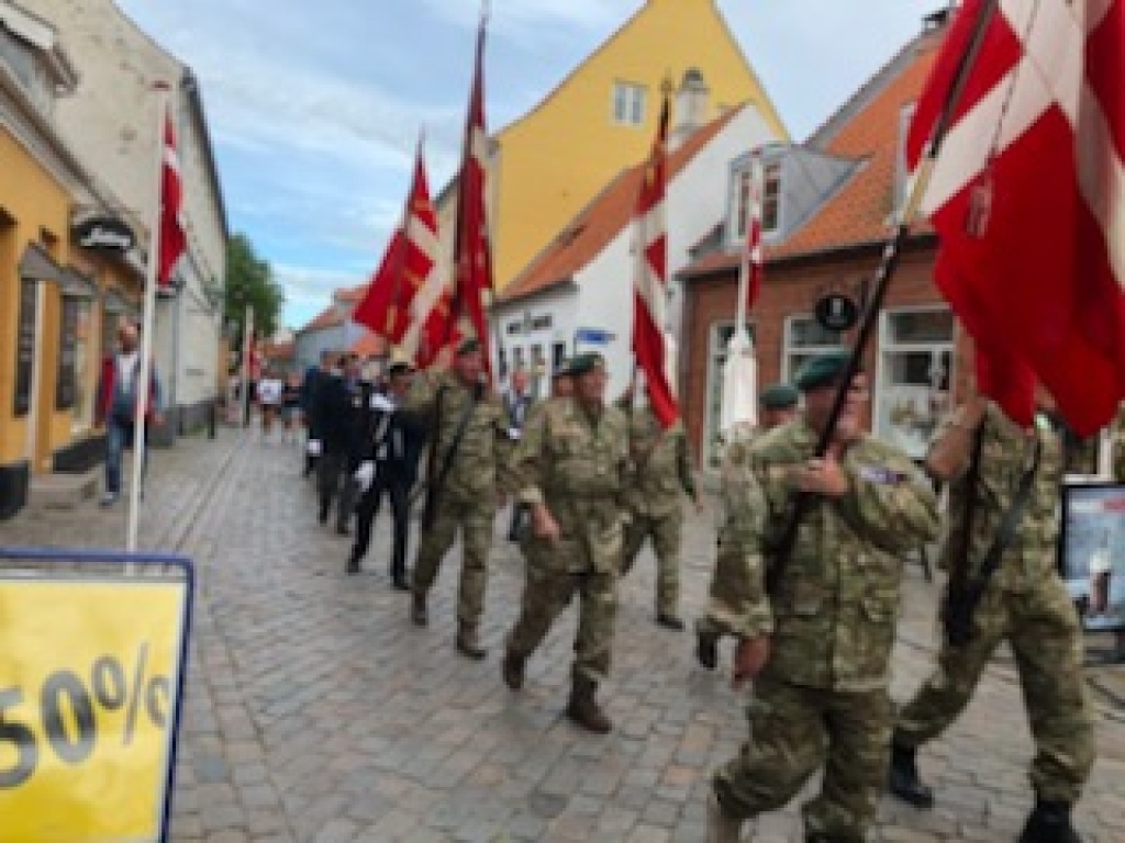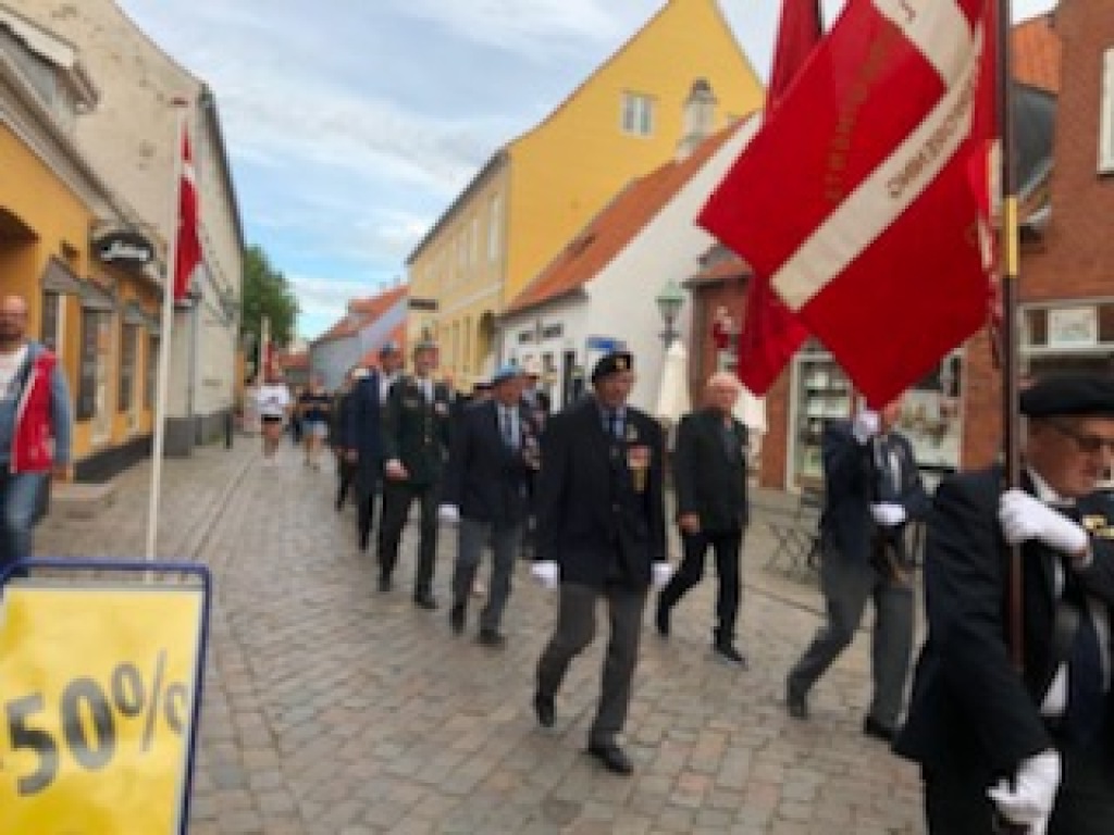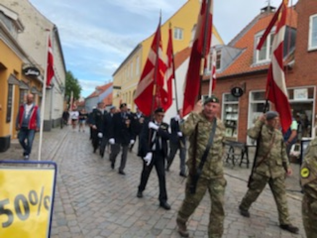 Gudstjenesten blev efterfulgt af march gennem byen ad ruten Kirkegade, Overgade, Torvet, Juulsbakke, Nedergade, Havnevej og til Marinestuen på Stockflethsvej.