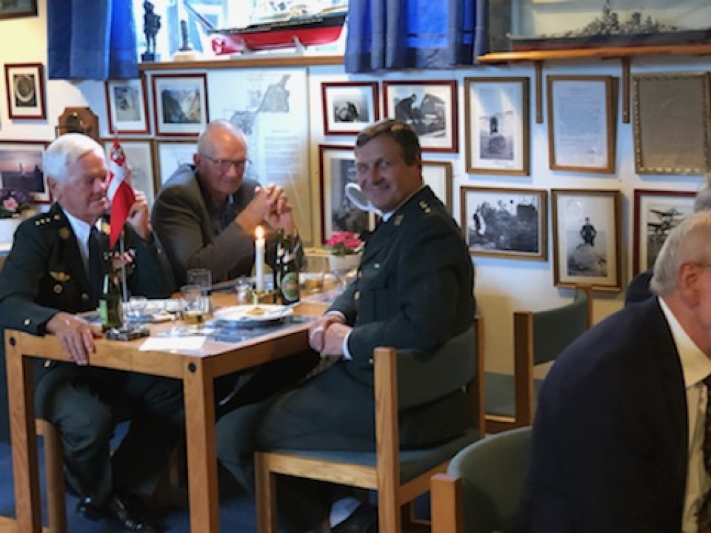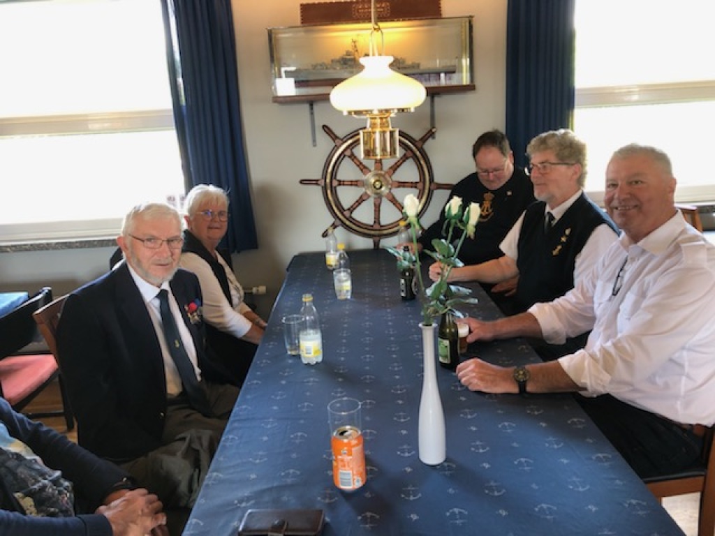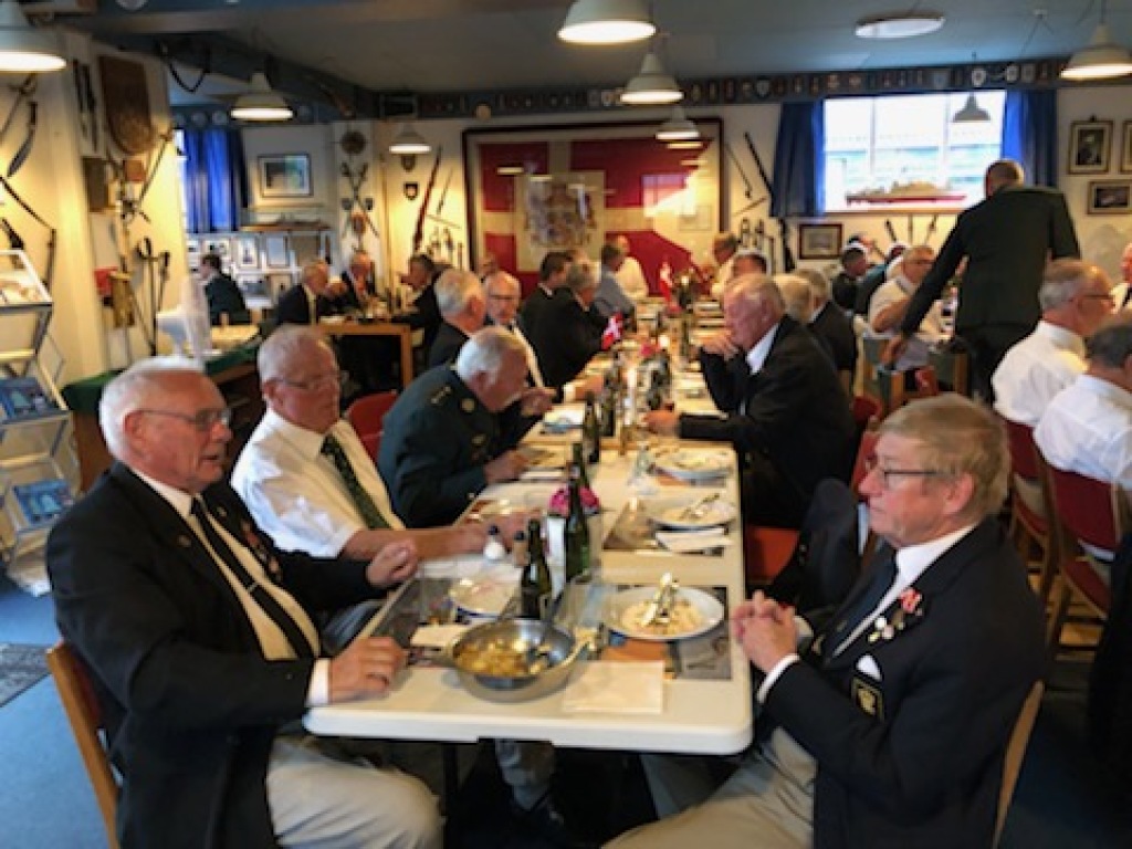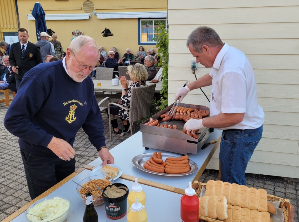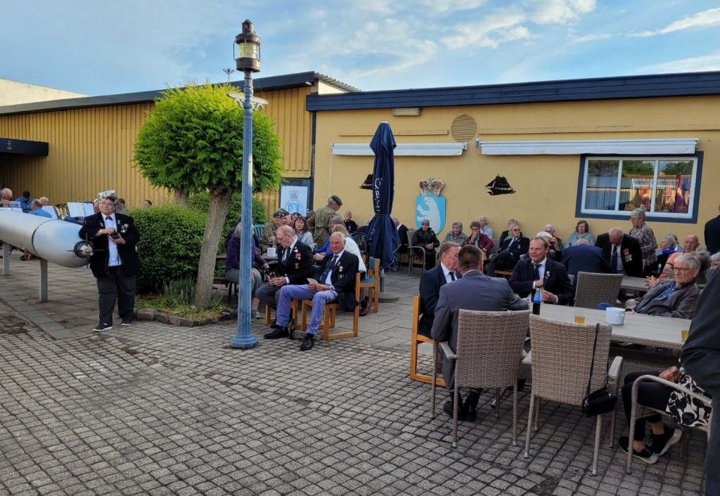 Efter højtideligheden marcherede paraden tilbage til Marinestuen, hvor der var aftrædning og hyggeligt samvær over en kop kaffe med brød.