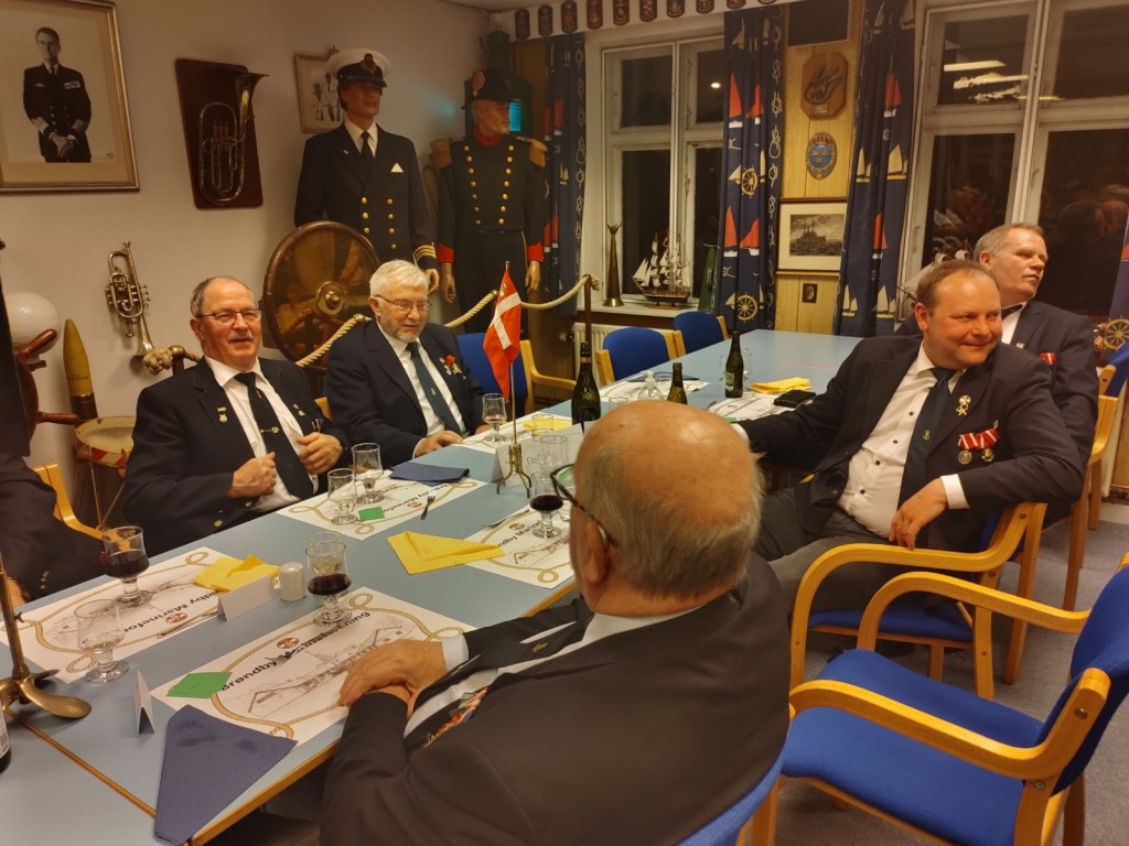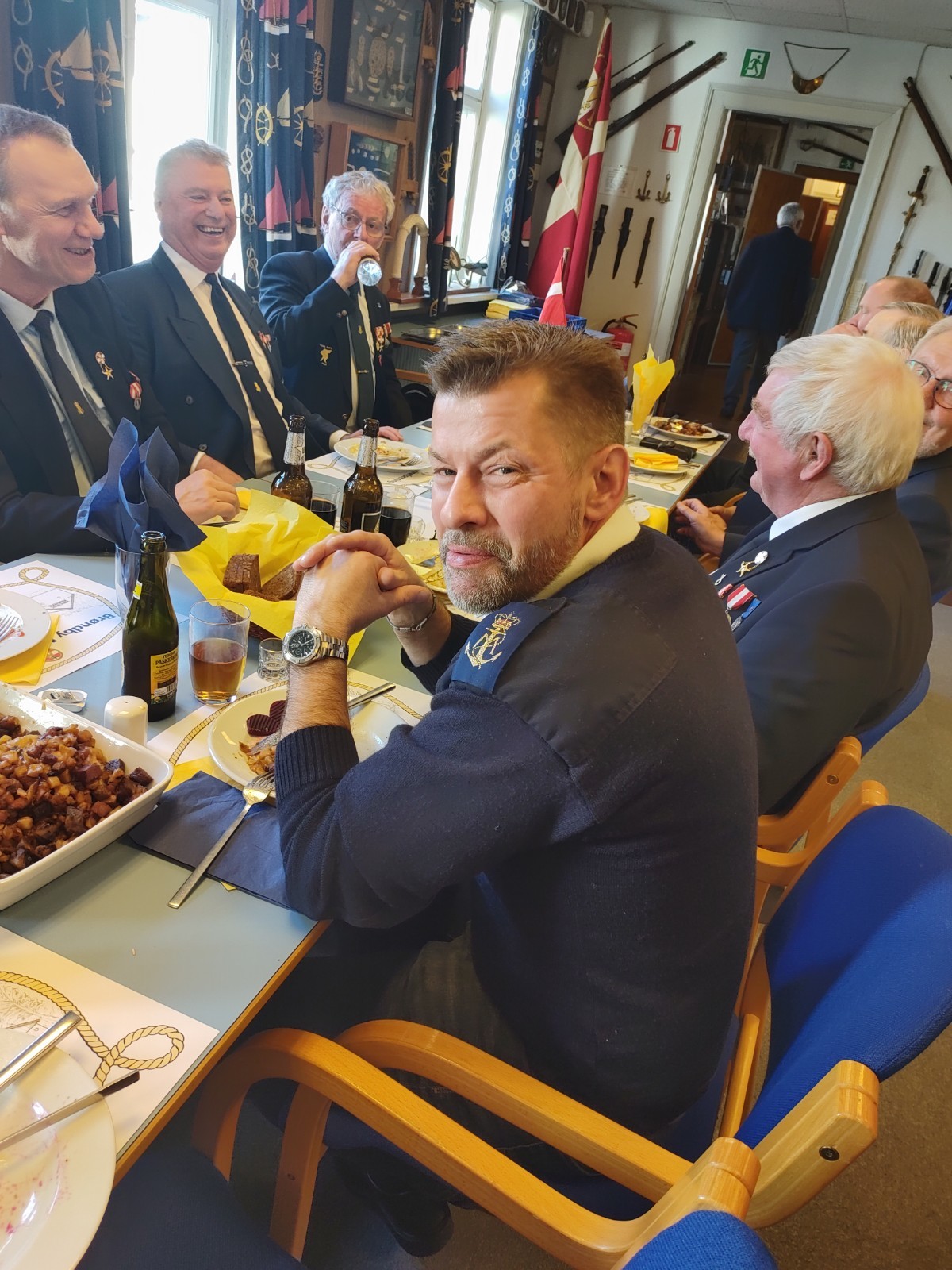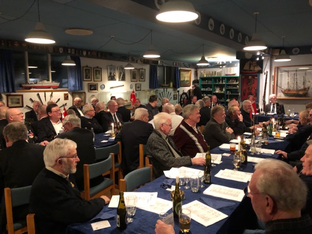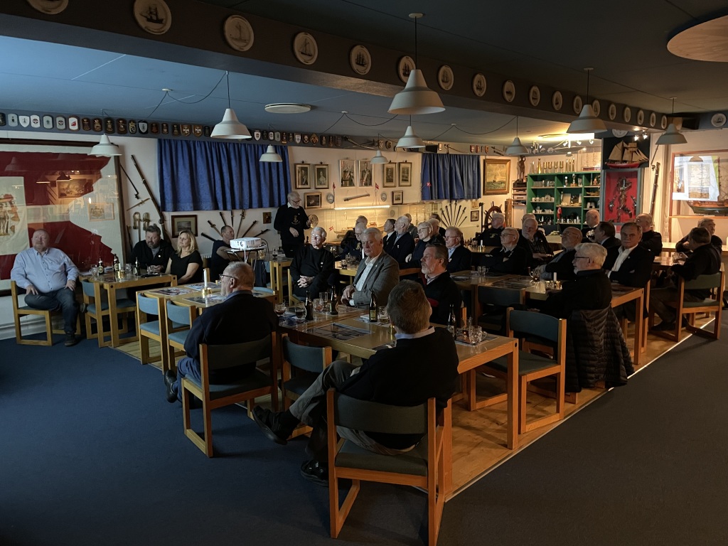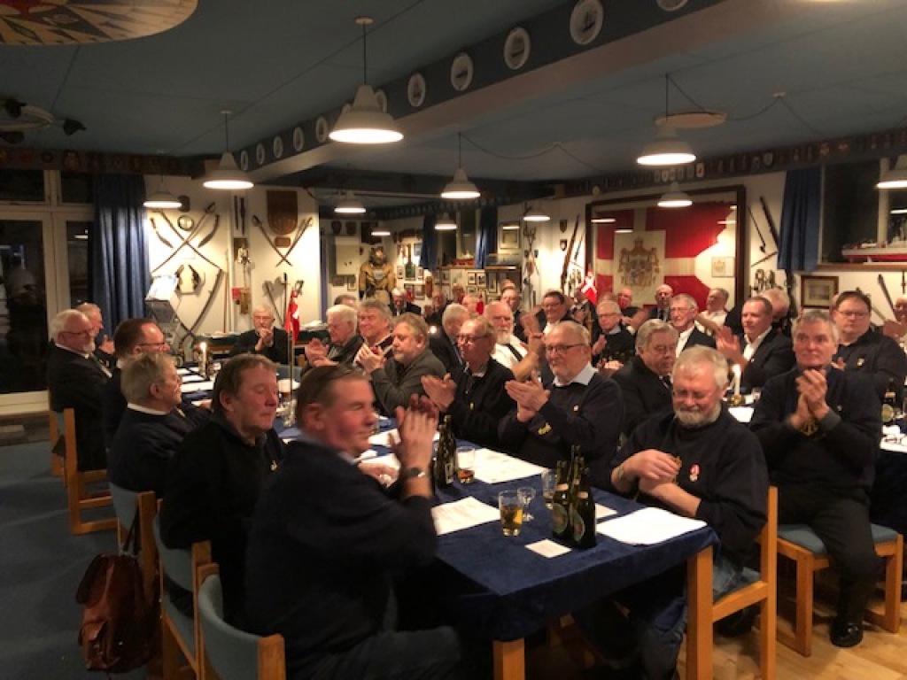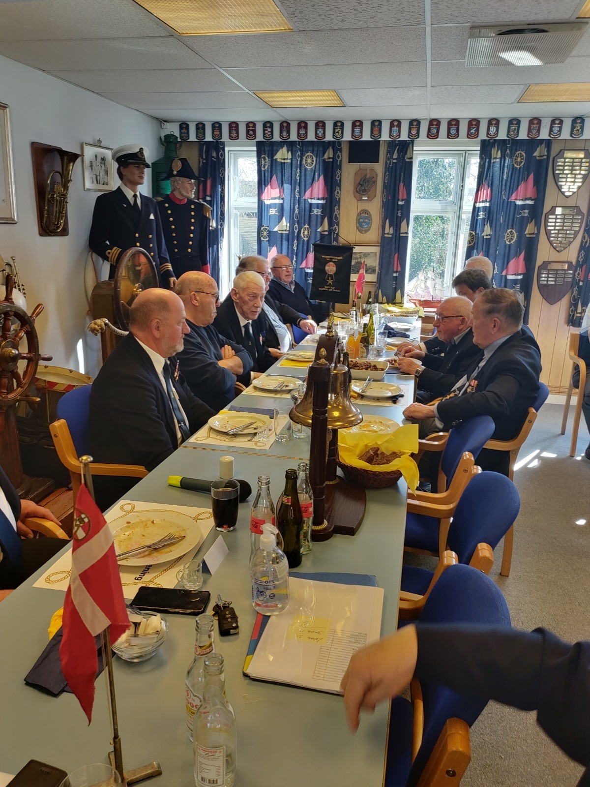 Foreningens generalforsamling den 24. februar startede i overensstemmelse med de bedste traditioner og i god ro og orden. Efter velkomst og flaghejsning nød de ca. 55 medlemmer hovmesterens vel-tillavede og velsmagende kogte torsk med div. tilbehør. Og efter spisningen stødte ca. en halv snes medlemmer yderligere til for at deltage i selve generalforsamlingen. Efter velkomst og flaghejsning samt et minuts stilhed for medlemmer, der er gået fra borde i det forløbne år, var der tildeling af jubilartegn samt overrækkelse emblem til nye medlemmer.