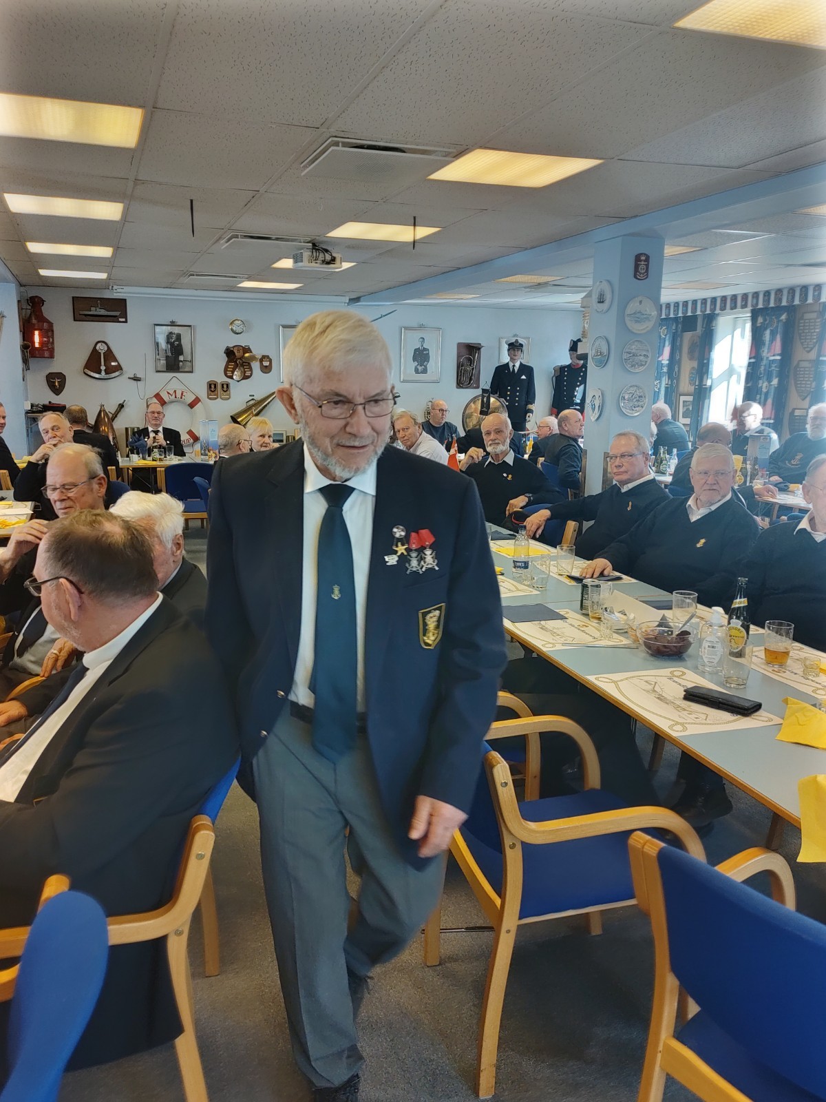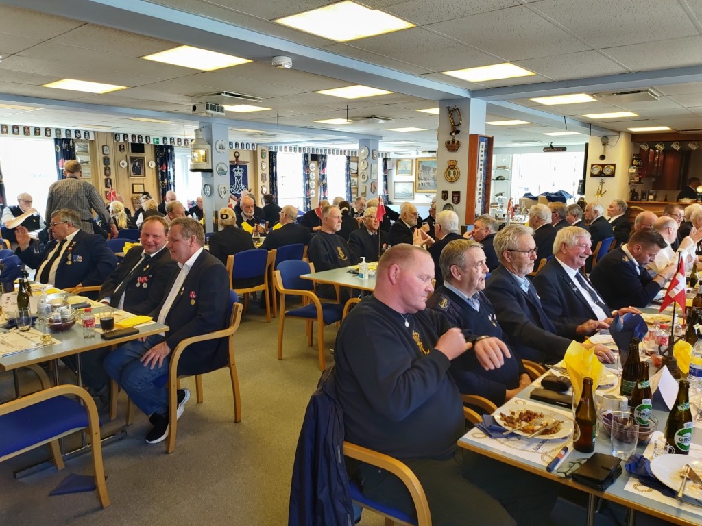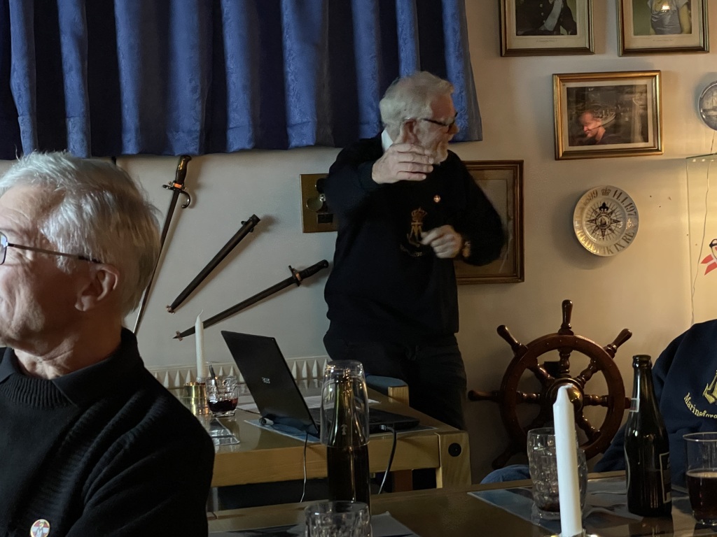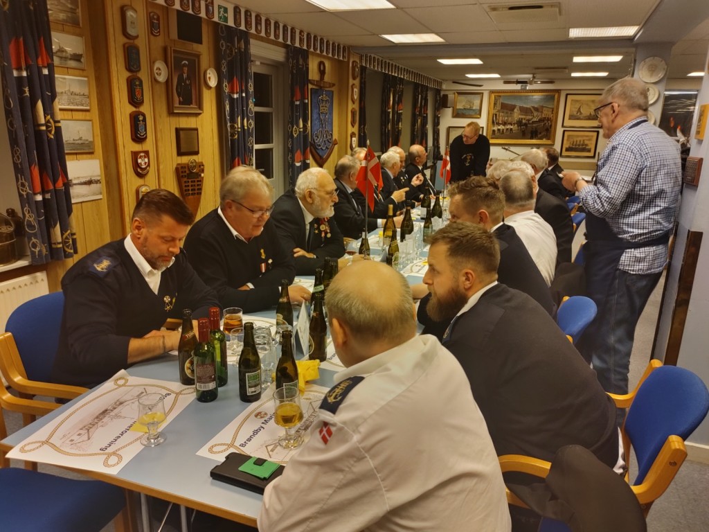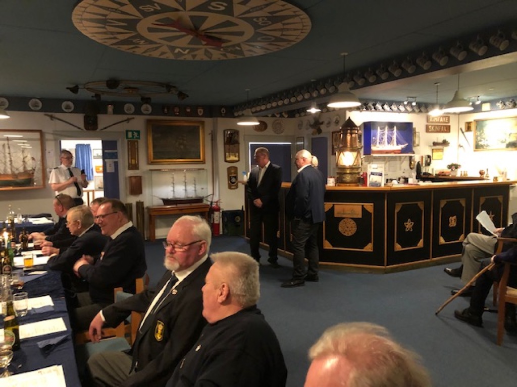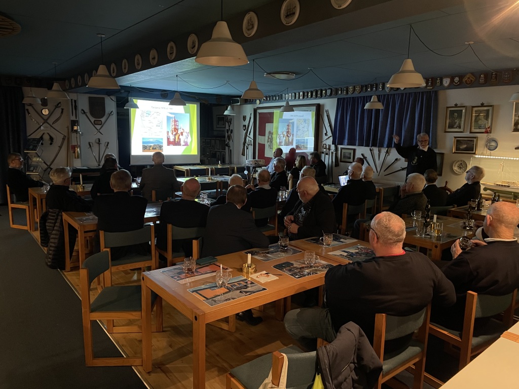 Foreningens generalforsamling den 24. februar startede i overensstemmelse med de bedste traditioner og i god ro og orden. Efter velkomst og flaghejsning nød de ca. 55 medlemmer hovmesterens vel-tillavede og velsmagende kogte torsk med div. tilbehør. Og efter spisningen stødte ca. en halv snes medlemmer yderligere til for at deltage i selve generalforsamlingen. Efter velkomst og flaghejsning samt et minuts stilhed for medlemmer, der er gået fra borde i det forløbne år, var der tildeling af jubilartegn samt overrækkelse emblem til nye medlemmer.