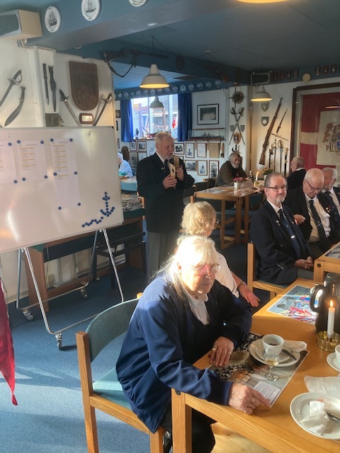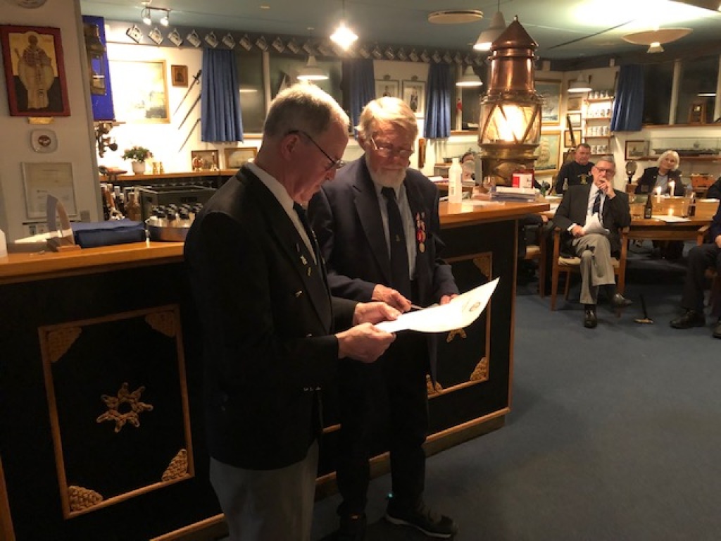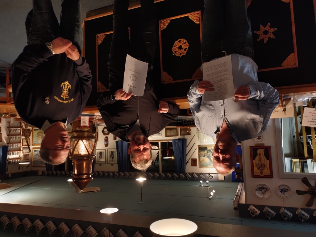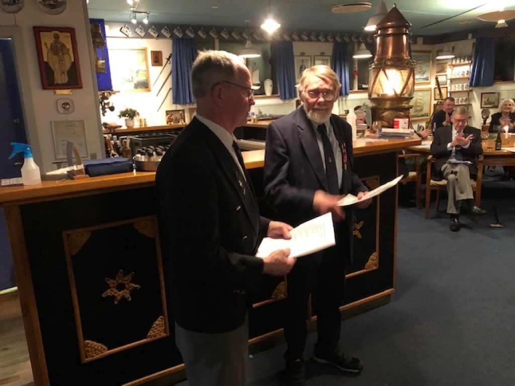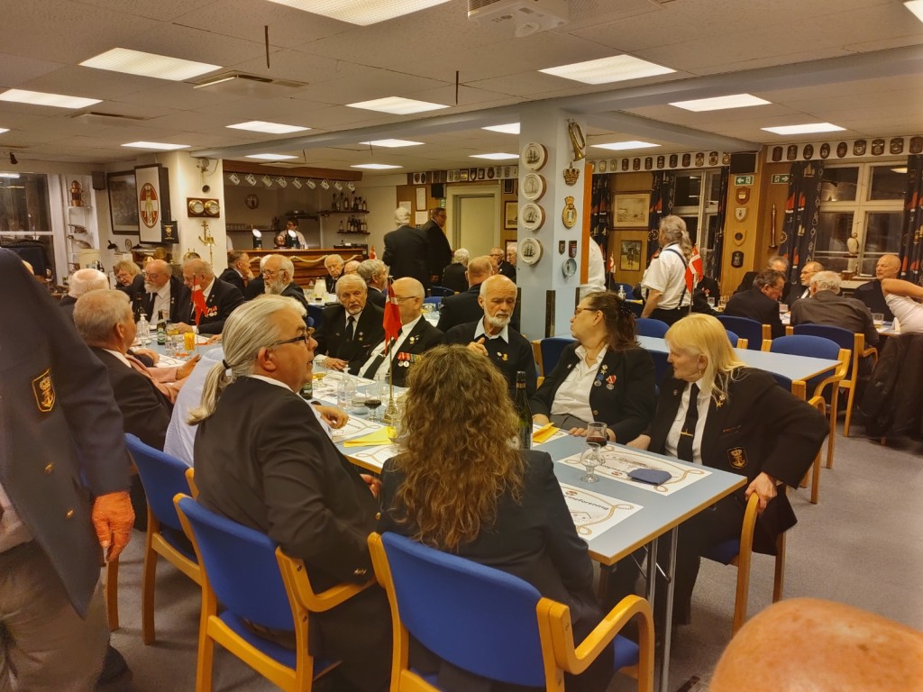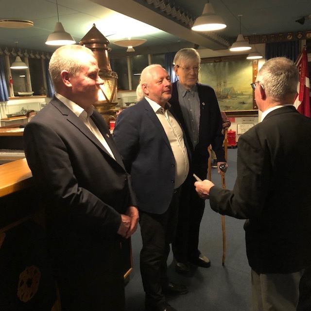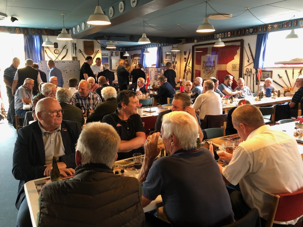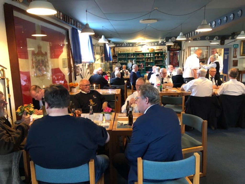 Foreningens generalforsamling den 24. februar startede i overensstemmelse med de bedste traditioner og i god ro og orden. Efter velkomst og flaghejsning nød de ca. 55 medlemmer hovmesterens vel-tillavede og velsmagende kogte torsk med div. tilbehør. Og efter spisningen stødte ca. en halv snes medlemmer yderligere til for at deltage i selve generalforsamlingen. Efter velkomst og flaghejsning samt et minuts stilhed for medlemmer, der er gået fra borde i det forløbne år, var der tildeling af jubilartegn samt overrækkelse emblem til nye medlemmer.