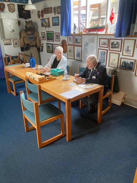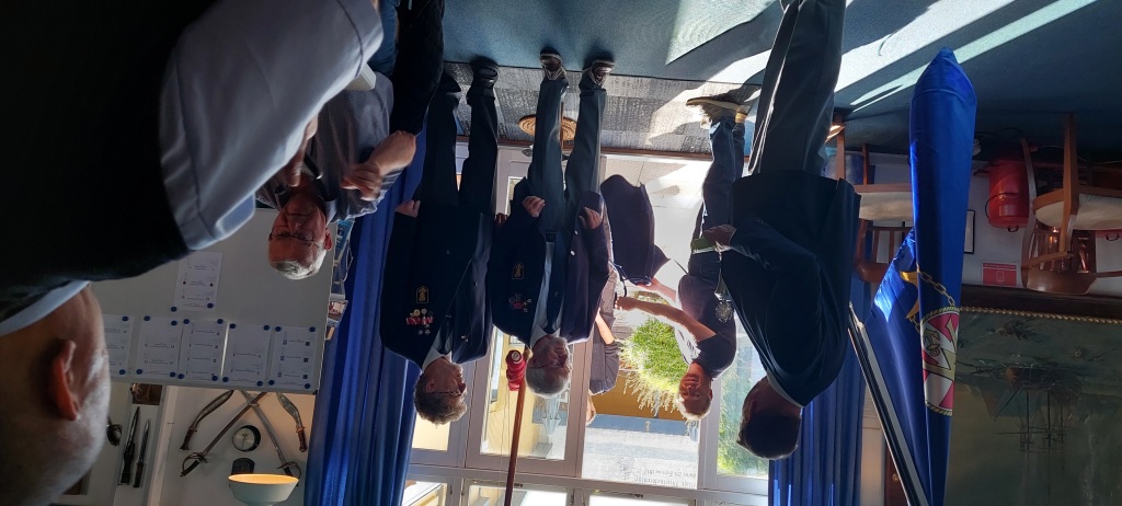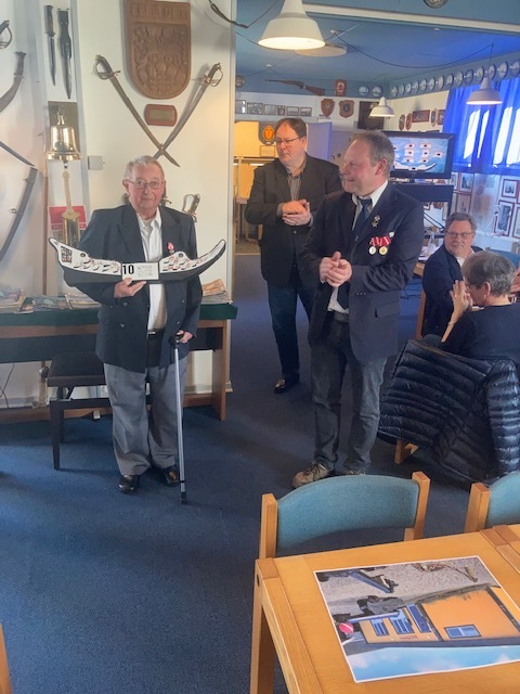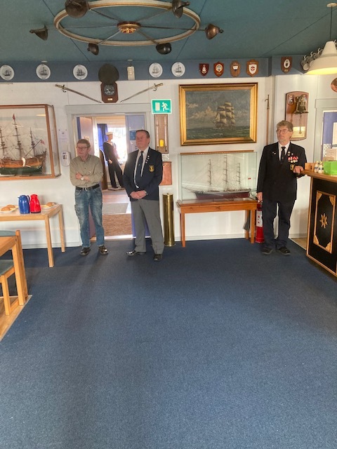 det blev markleret ved, at signalflagene i flagspillet foran Marinestuen blev udskiftet, så der nu står 105, - efterfulgt en kop formiddagskaffe indendøre i varmen for de deltagende repræsen- tanter. - Og så kan vi jo passende allesammen ønske både foreningen og os selv tillykke med den høje alder. Nogle af os holder sig bedre end andre. Foreningen nok bedst af alle.