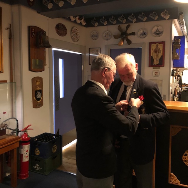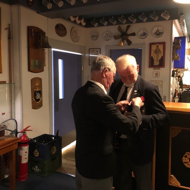 Som aftenens højdepunkt blev Ole Laursen herefter kaldt frem og blev - efter godkendelse i Landsbestyrelsen - tildelt Marineforeningens hæderstegn i sølv, for sin mangeartede og store indsats for foreningen gennem mange år.