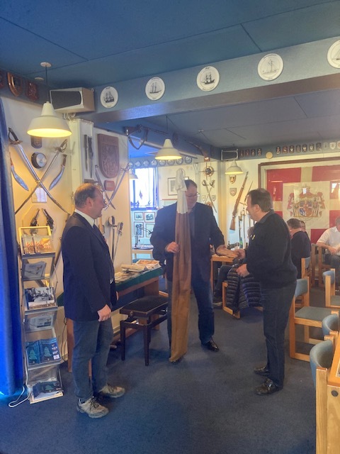 Det var derfor med stor glæde, at repræsentanter fra foreningen - med vores nye formand Mikkel Brøgger i spidsen - i forbindelse med allerede tidligere fastlagt møde i anden anledning den 4. marts kunne overrække fregatledelsen overskuddet fra slupsejladsen, - ialt 11.000,- kr. !