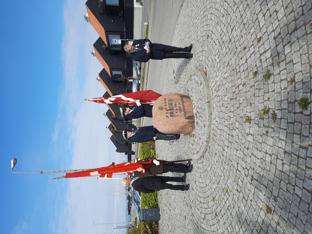 Det var en smuk og værdig markering af den nationale mindedag, da en lille snes medlemmer af foreningen deltog i det traditionelle arrangement ved foreningens mindesten på havnen i i Ebeltoft. Stenen var flankeret af Marineforeningens flag og Vaabenbrødreforeningens fane, mens den øvrige parade stod opmarcheret med front mod mindestenen, der blev rejst af Ebeltoft Marineforening i 1946.
