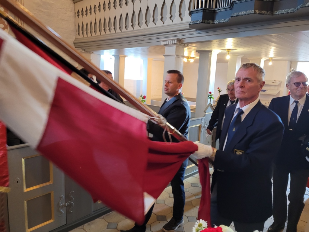 Ialt 12 flag/faner fra foreninger og korps m.v. deltog i årets Valdemarsfest og bidrog derved væsentligt til højtideligholdelsen og festliggørelsen af det traditionelle arrangement, der startede med Festgudstjeneste i Ebeltoft Kirke, hvor Grenaa FDF-orkester spillede både præludium og postludium og derimellem en lille koncert på 3 numre. Sognespræst Heidi Bisgaarde holdt en god og meget aktuel prædiken, hvor der også blev trukket paralleller til den aktuelle krig i Ukraine.