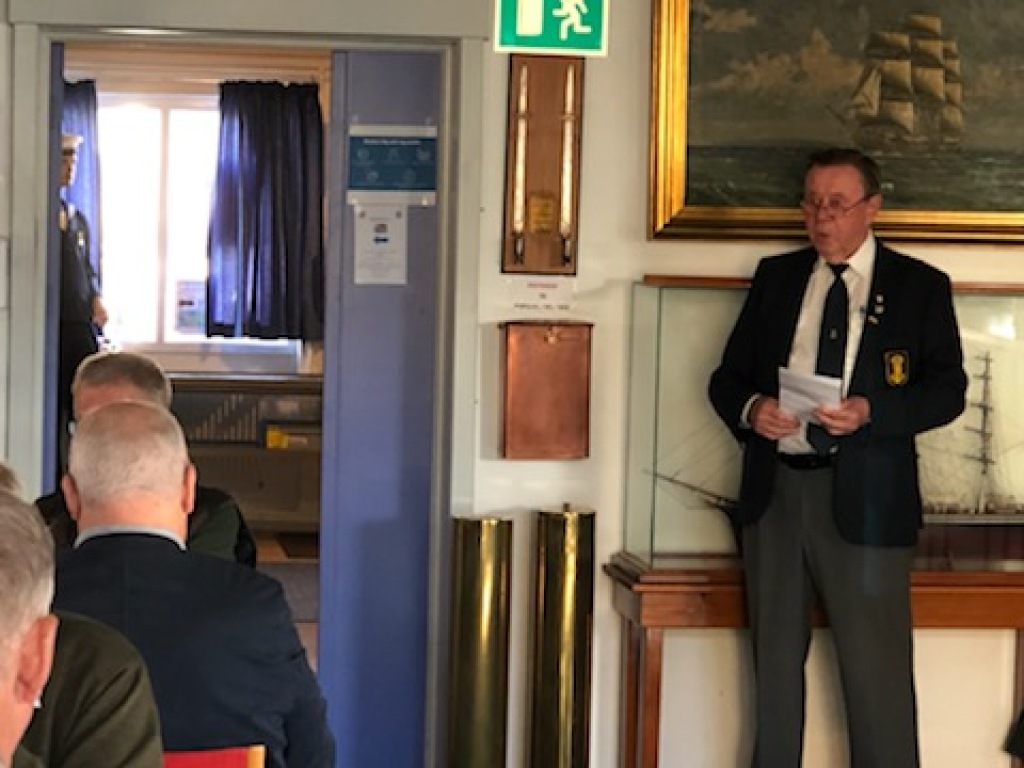 Foreningens medlem, tidligere generalsekretær i Dansk Sømandskirke, orlogs- og sømandspræst Ronalæd Pedersen emer., holdt en meget smuk og meget tankevækkende tale, hvor han også drog paralleller til den nuværende situation med krig i Europa, - russernes invasion af Ukraine og den skæbne ukrainerne lige nu lider.