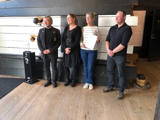 På nedenståen de fotos ses fra venstre: Tovholder for slupsejladsen Poul Bojesen, Fregattens udstillingsleder Karen-Louise Juhl, fregatdirektør Karin Buhl Slæggerup og MF-formand Mikkel Brøgger.